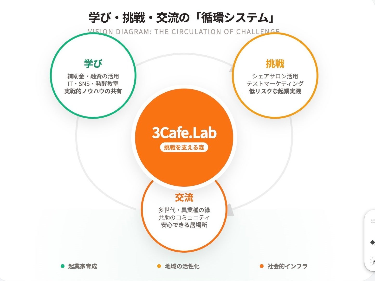 鹿児島交流3cafe.Labは、地域の活性化と人々の挑戦を支援することを使命としています。私たちは単なる理想論ではなく、実際に補助金や融資を活用した現実的なアプローチで、持続可能な事業モデルの構築を進めています。