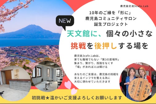皆さま、はじめまして。鹿児島交流3cafe.Labと申します。私たちは鹿児島の繁華街天文館エリアに、【学び・挑戦・交流がつながる体験型コミュニティサロン】をつくろうと活動しています。