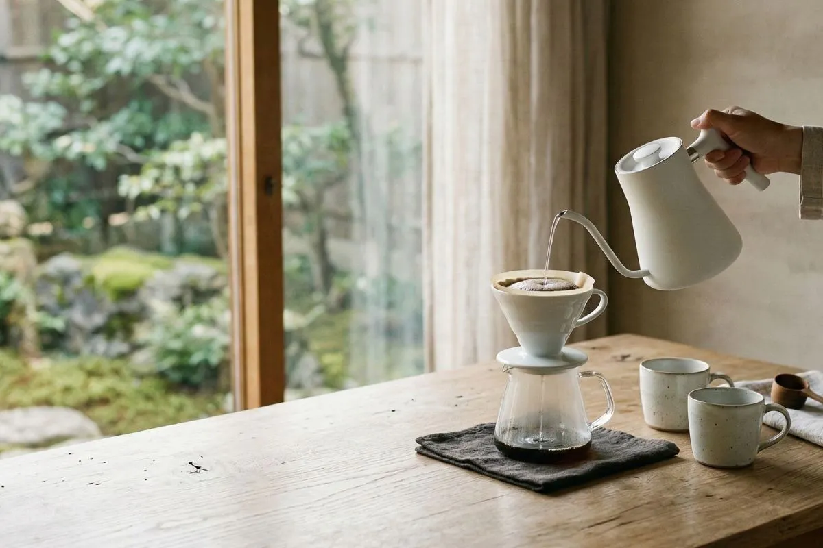 お湯を注ぐ音。