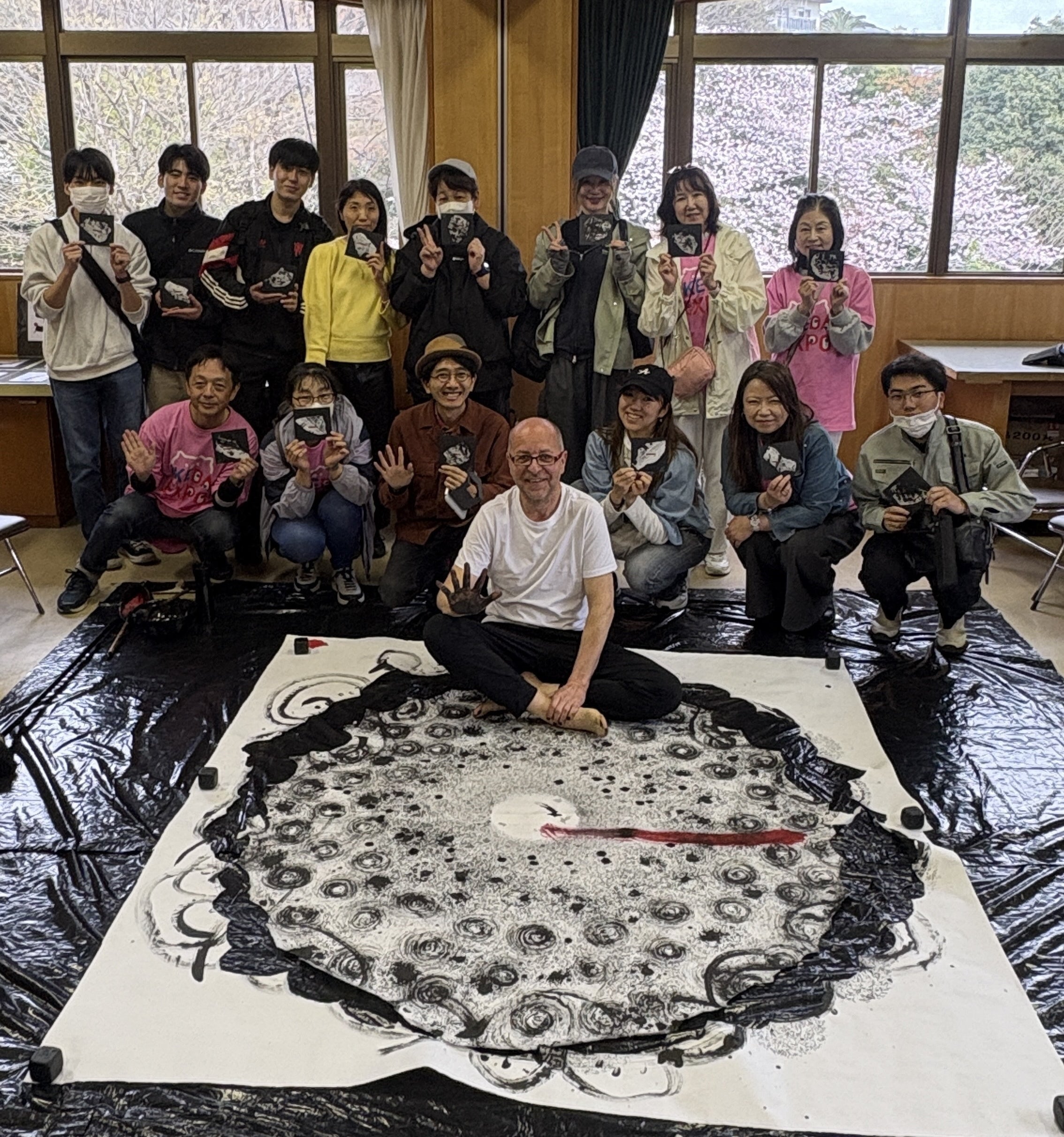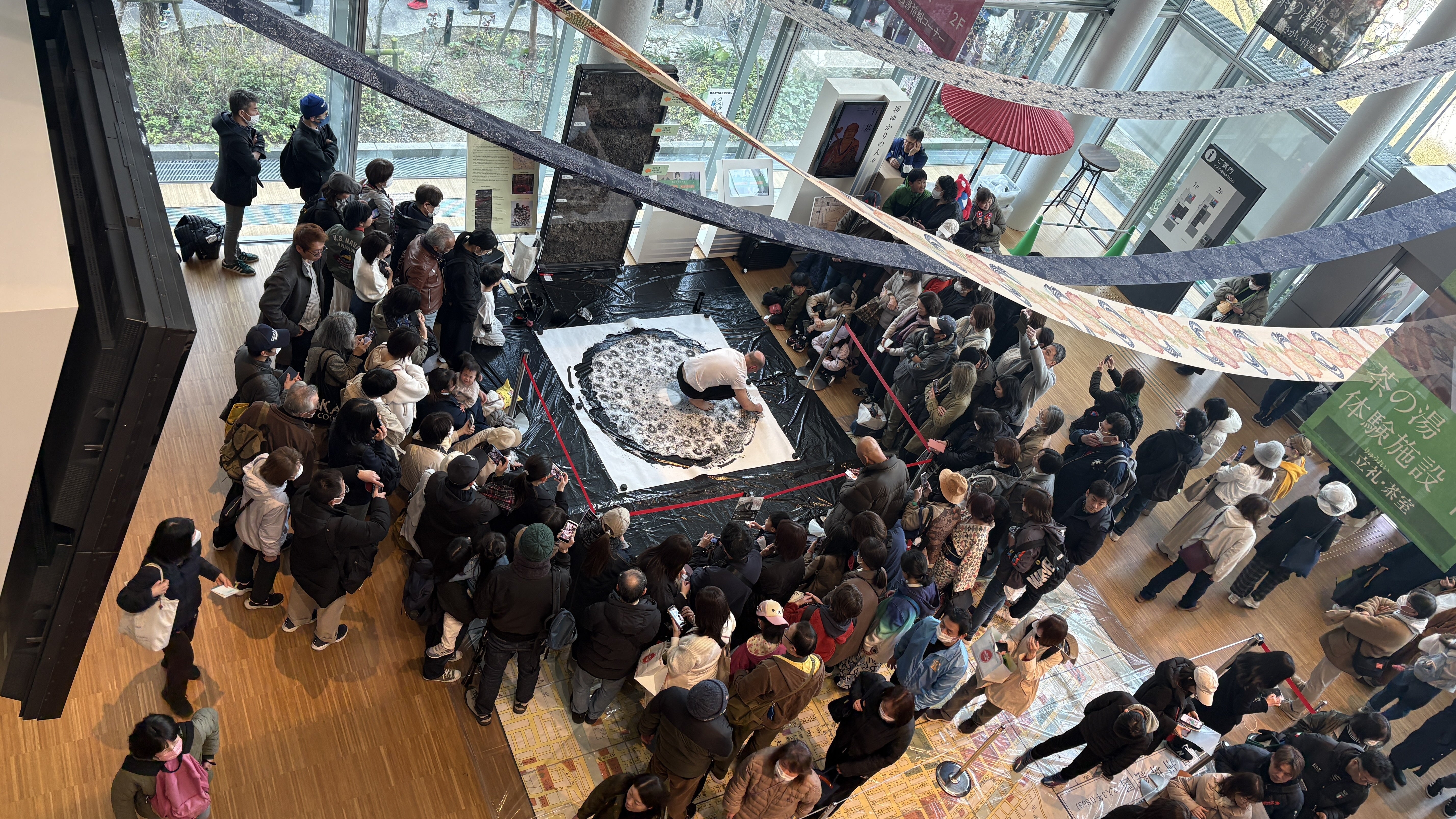 最後に引く一本の赤い線は「一(いち)」を意味し、その場にいるかけがえのない「一人ひとり」への敬意を象徴しています。描き終えた作品は切り分けられ、観客の皆様へと手渡されます。その断片は、私たちが大きな繋がりの一部であり、決して一人ではないことを思い出させてくれる「証」となります。