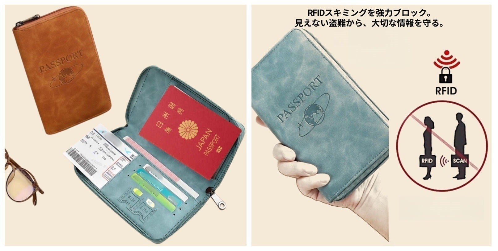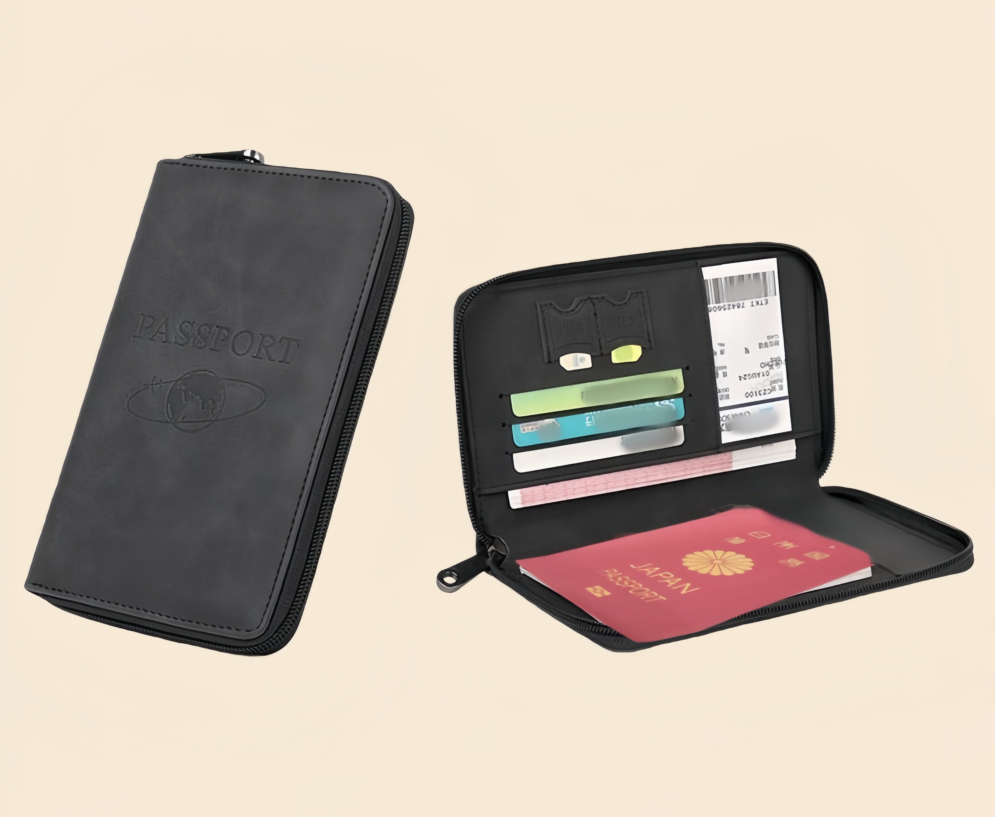 このパスポートケースは、航空券・パスポート・カード・SIMカード・領収書まですべてが