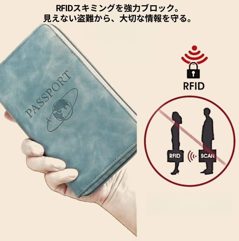 本製品は、外装にRFID電磁防護層を採用。電磁波を遮断し、カード情報の不正読み取りを防ぎます。