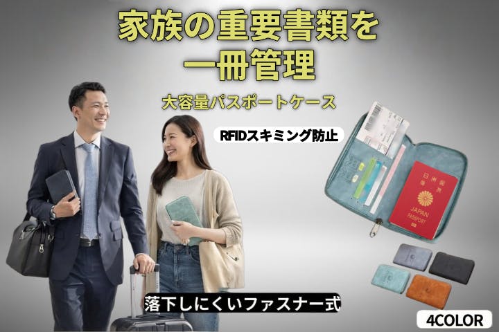 家族の重要書類を一冊にまとめて管理できるパスポートケース。