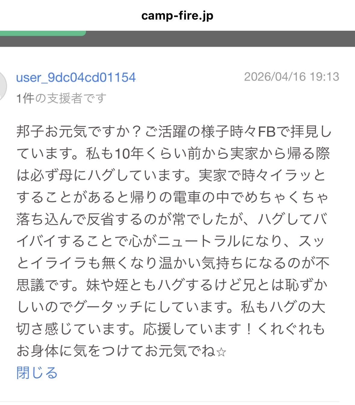 しばらく会っていない友人からの支援とメッセージに感謝しているのは