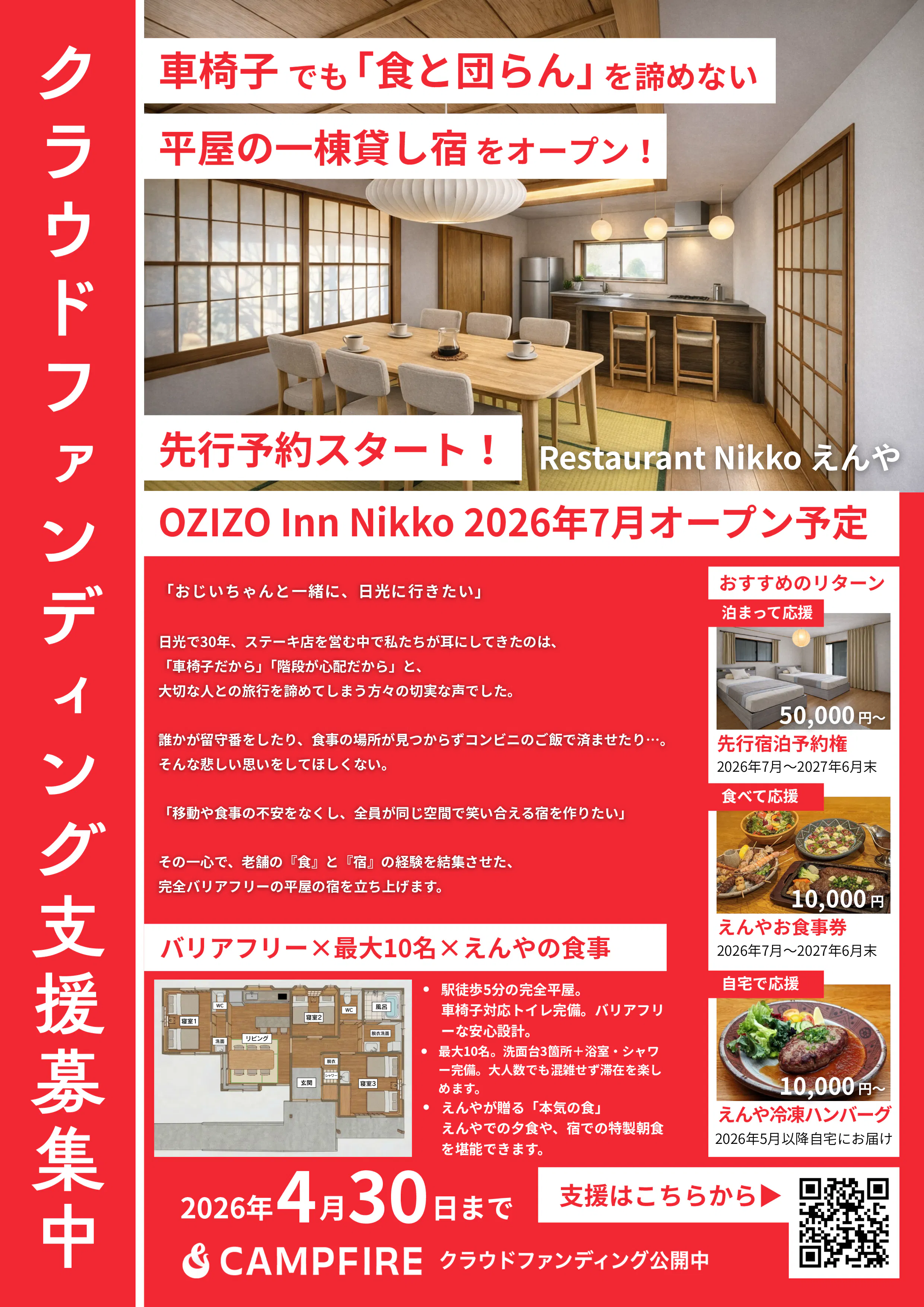 「車椅子でも、三世代でも。全員が同じ空間で笑い合える宿を作りたい」私たちのこの想いに共感してくださる方がいるという事実が、何よりの励みになっています!