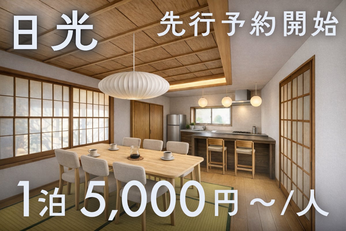 10名で割れば1人あたり5,000円。お盆も、紅葉シーズンも、年末年始も、同じ料金で泊まれます。日光の中心地・東武日光駅徒歩5分・完全平屋バリアフリーの一棟を、この金額で丸ごと独占できるのは、このクラウドファンディング期間中だけです。