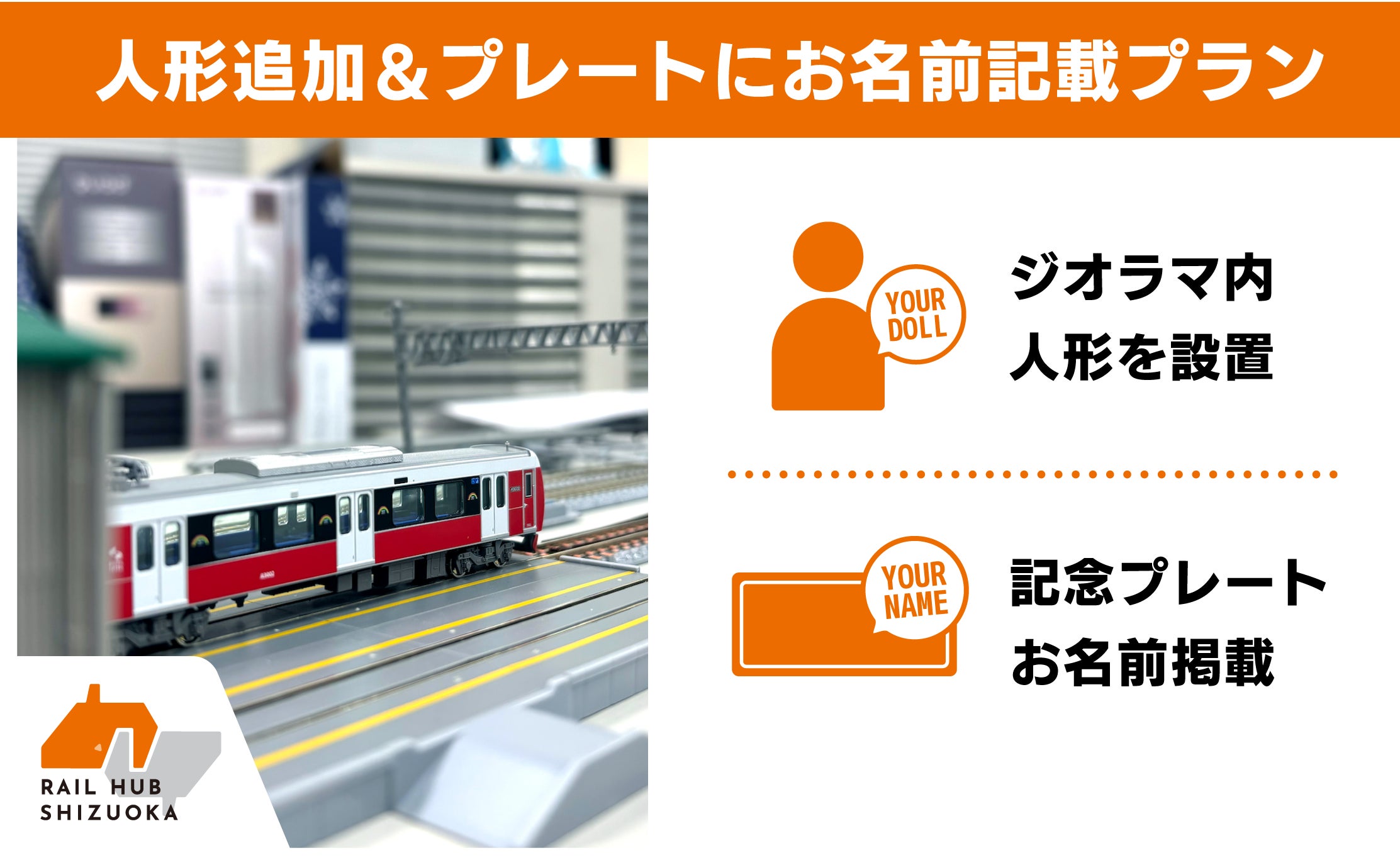 RHSの立ち上げの時にしか支援できない特別なリターンです。みなさんの支援で、Nゲージで作られた「静岡のまち」を人でいっぱいにしてください!