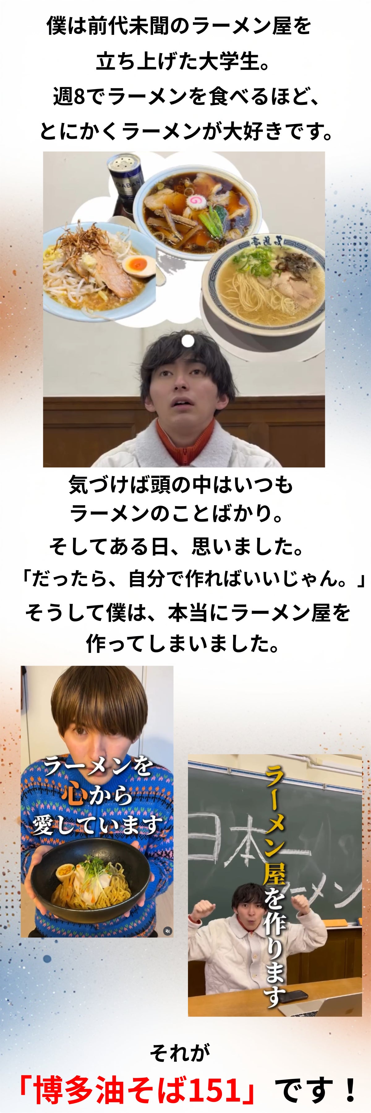まだまだ未熟な大学生ですが、ラーメンへの情熱だけは誰にも負けません。