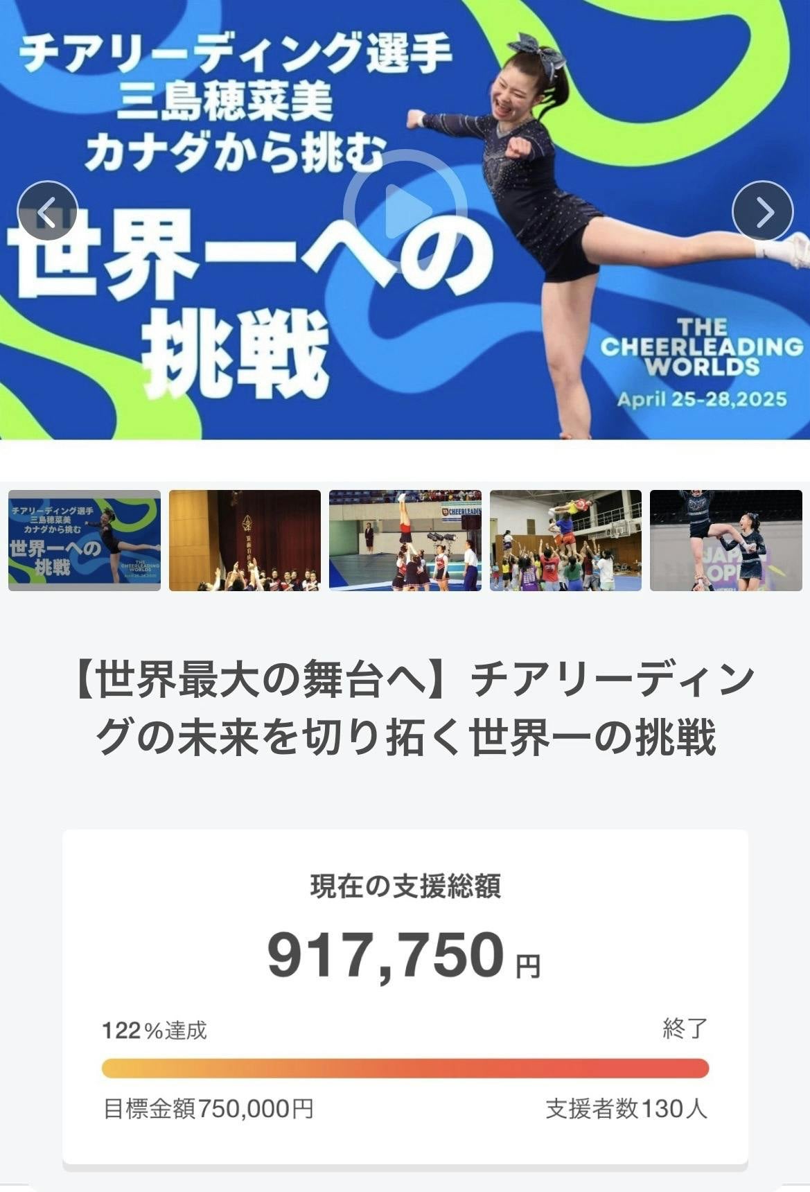 現在、カナダ・バンクーバーでチアリーディング選手として活動し、日本人として初めてカナダ代表に挑戦している三島穂菜美です。