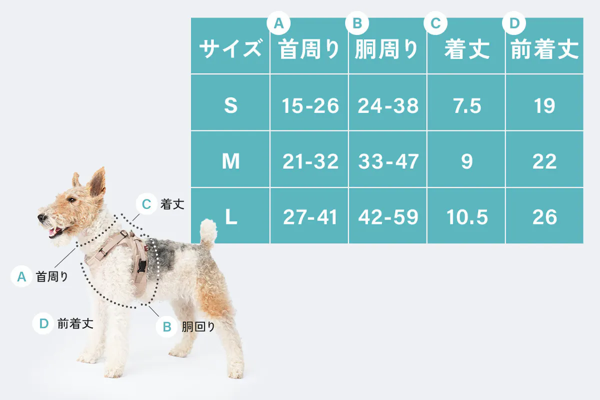 お腹深くまでカバーし、肋骨全体を覆うことで、後ずさりする子でもハーネスから抜けにくい設計になっています。