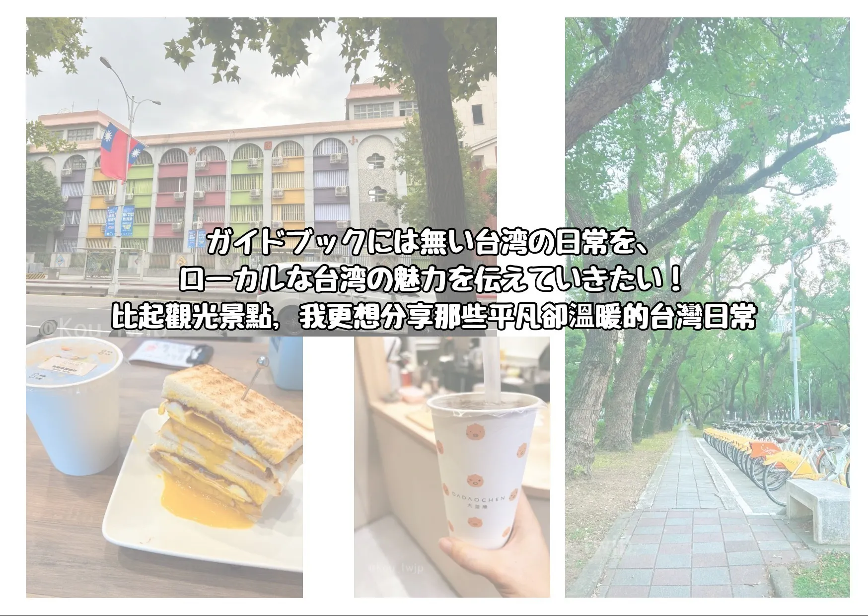 はじめまして、Kouです。初めての海外旅行で台湾に行ったことをきっかけに台湾が大好きになりました。台湾には深い魅力を感じており、その美しさを多くの人々に伝えたいと考えています。また台湾の方々はとても優しく、「よく聞くけど本当はどうなの?」と思った方もみえるかもしれませんが、私自身様々な場面で感じました。その時のエピソードも後ほど紹介致しますが、こんな人情味溢れる台湾の日常の風景を撮し、皆さんに共有したいと思いました。