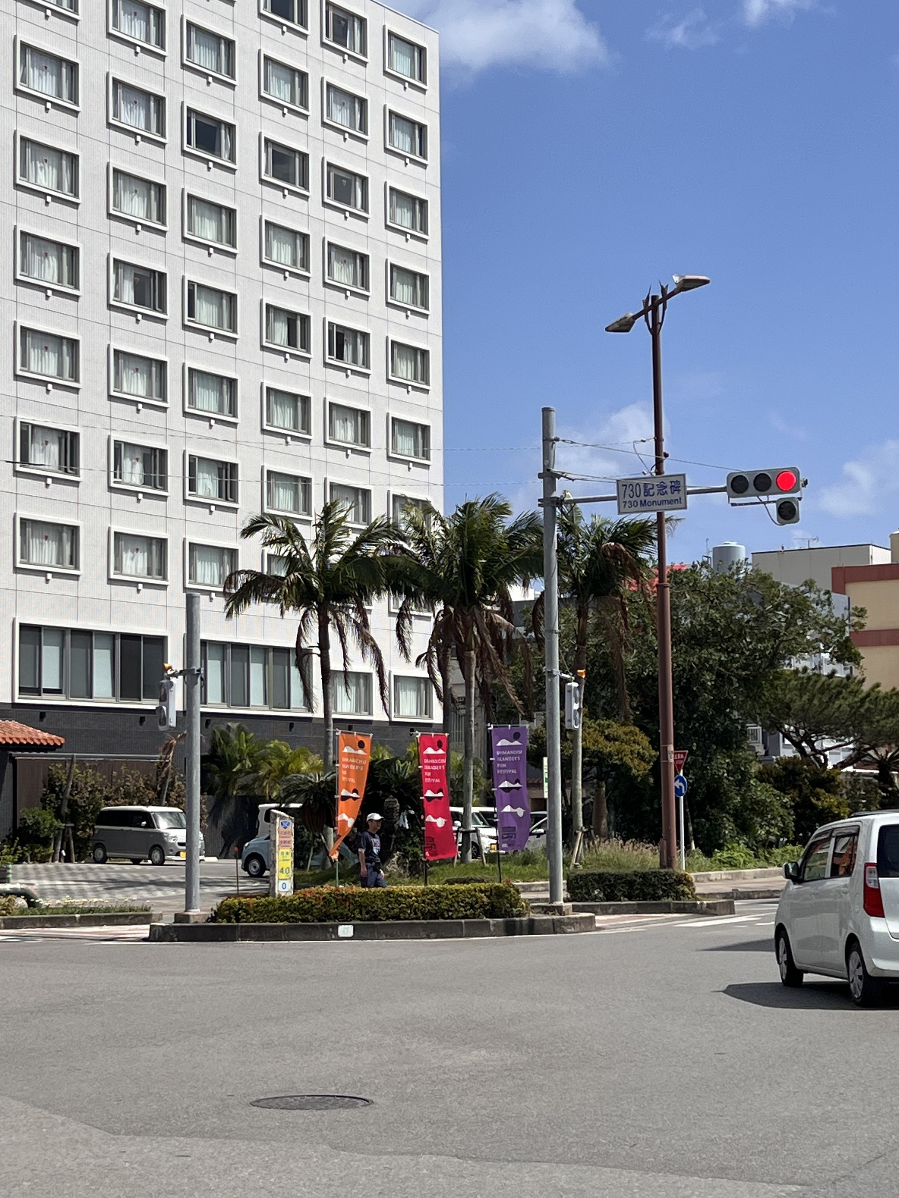 メインのブルーが欠けていますが、石垣島の風景に馴染む映画祭ののぼり。アムステルダム国際ドキュメンタリー映画祭のシティデザインを参考にしています。