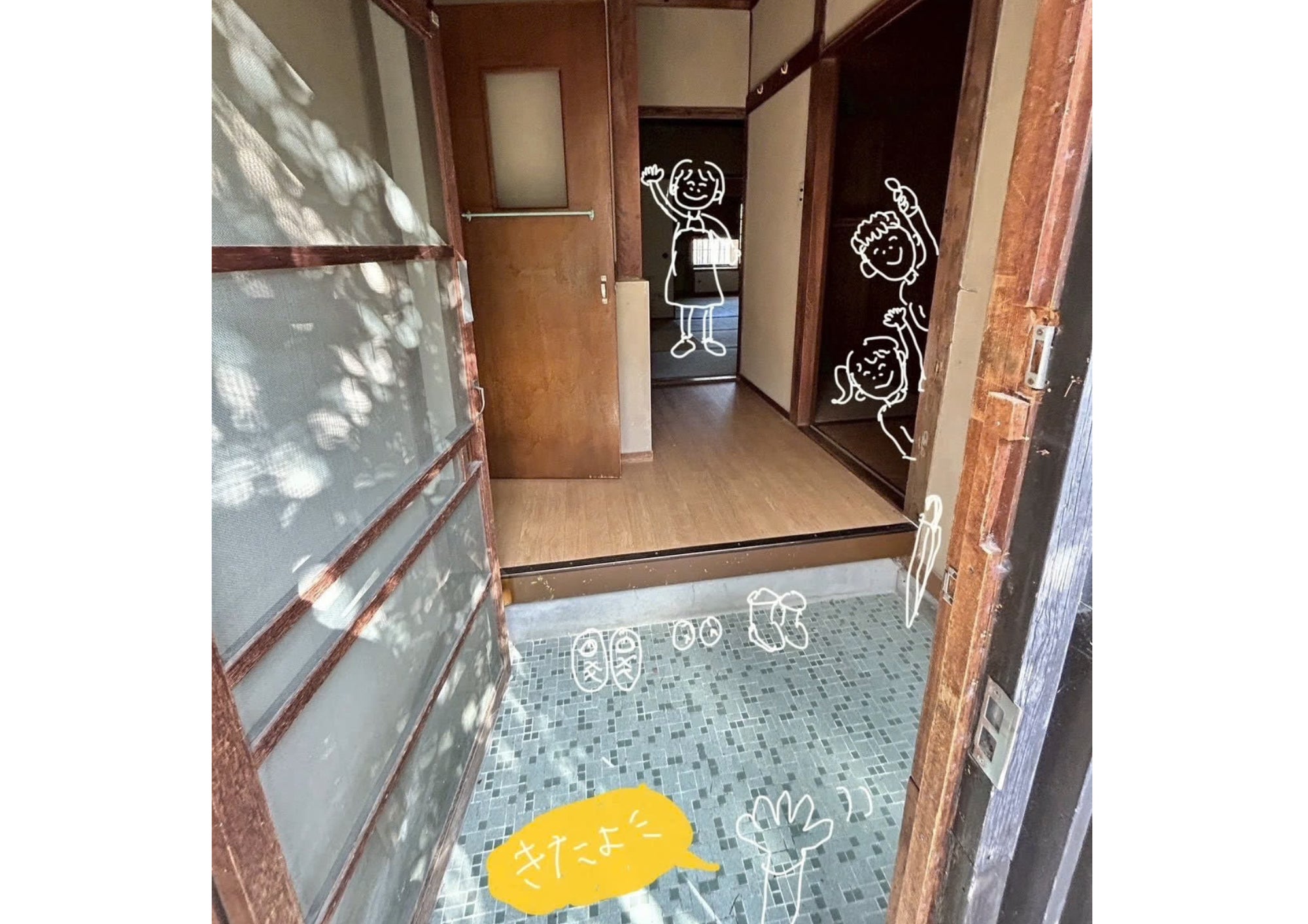 あたたかみのある古民家。この玄関に子どもたちのかわいい小さな靴がたくさん並ぶといいな