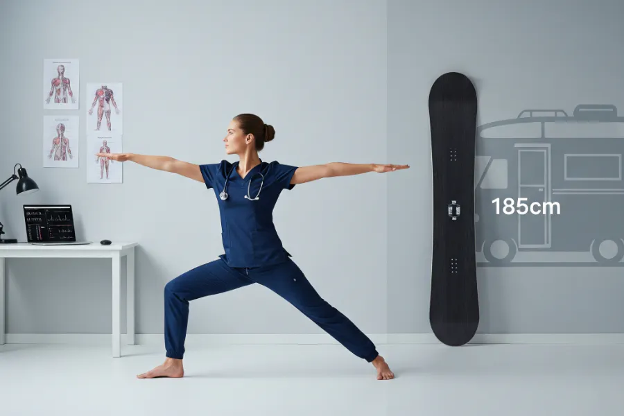 私が挑もうとしているのは「185cmのスノーボード板」。 なぜ、足の専門知識を持つナースが、あえてこんな規格外の板に挑むのか。それは、この巨大な板が「小手先の誤魔化しが一切通用しない、究極の身体操作の試験場」だからです。