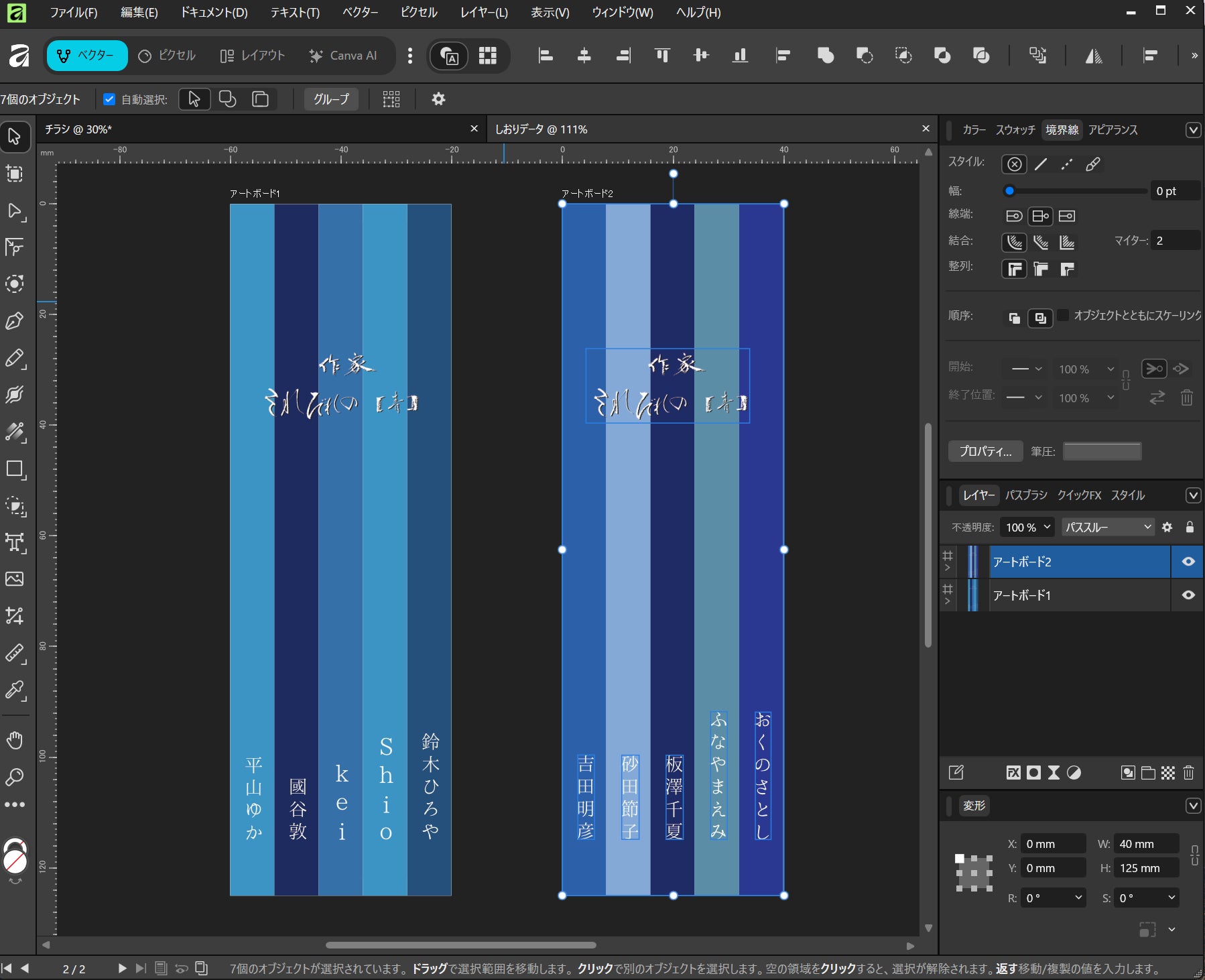 2026/03/30 21:30大変遅くなりましたが、デザインが完成し、無事にDM、チラシ、ポスター、しおりの入稿が終わりました!本日はメインビジュアルと、その裏面に使用する展覧会詳細情報を先行公開♪前回公開の赤展のデザインを踏襲したデザインとしました。チラシの裏・ポスターに使用するデザイン②はこちら。青展作家の作品をなるべく多めに使いつつ、展覧会の特徴をわかりやすく組み、文字と画像が半々になるように、余白を多めにした上品なデザインに仕上げました。帯に使用している青緑は、赤展のときのものを同じく使用しています!今回もご来場特典としてメインビジュアルしおり、作家の作品を使用したサインカードを配布します♪しおりは公式Instagramアカウント(@houkoh_project)をフォローでプレゼント。サインカードは各作家のSNSをフォローで、最大10名の作家+主催1枚の合計12枚受け取ることができます♪主催は今回の青展には出品しませんが、赤展で配布した上記デザインのサインカードを配布予定です。どうぞお楽しみに! もっと見る