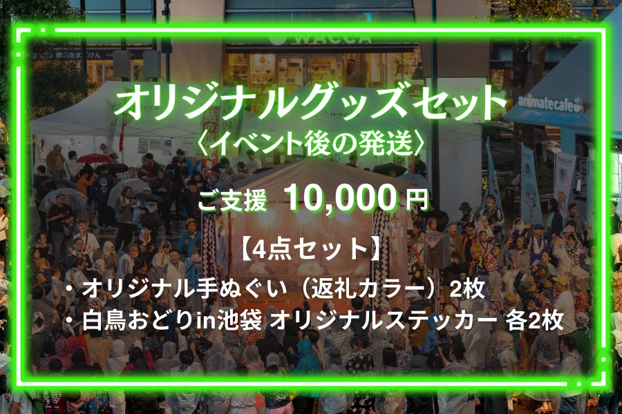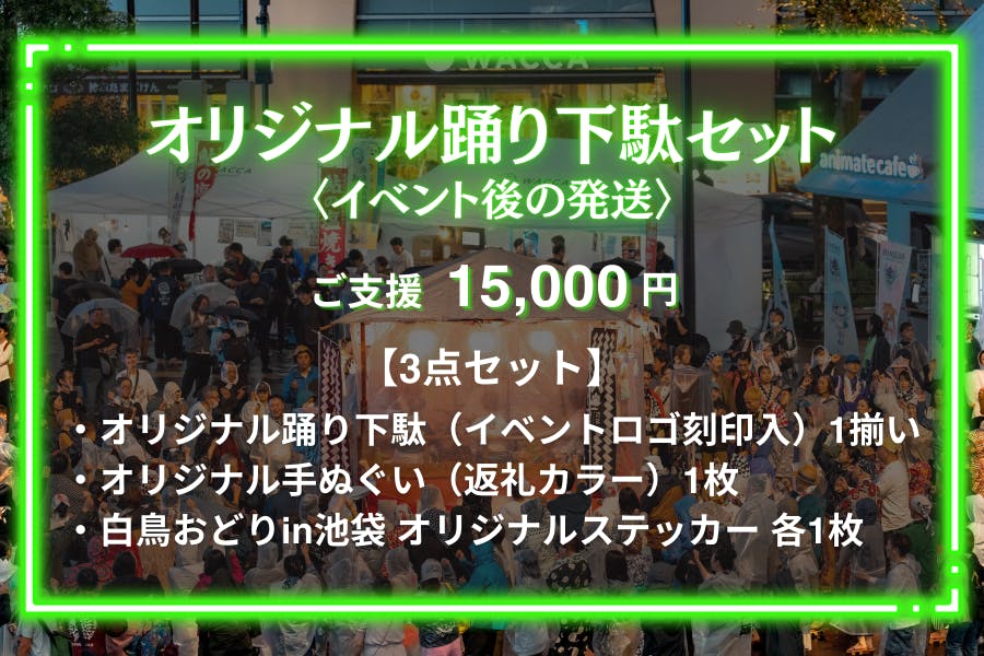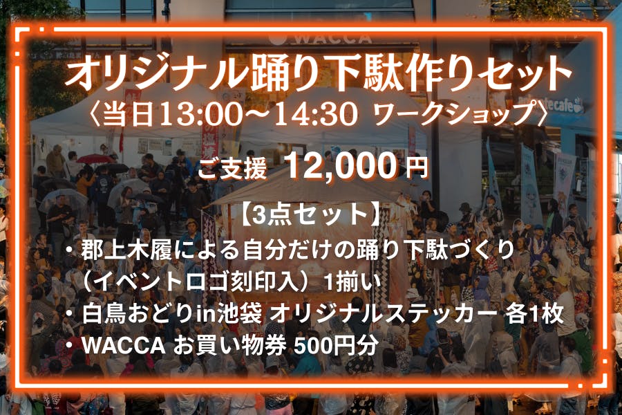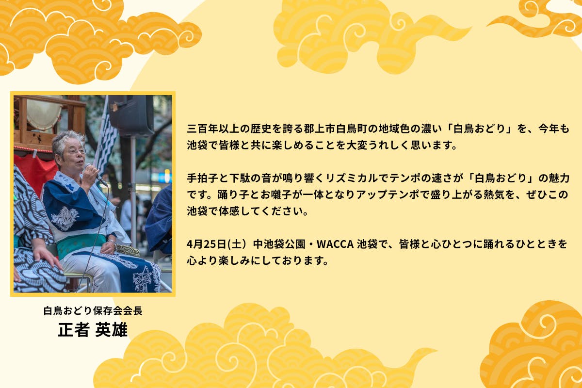 皆様からいただいたご支援は、本イベントの開催費用、白鳥踊り保存会の皆さまを岐阜県郡上市からお呼びするための経費として大切に活用させていただきます。