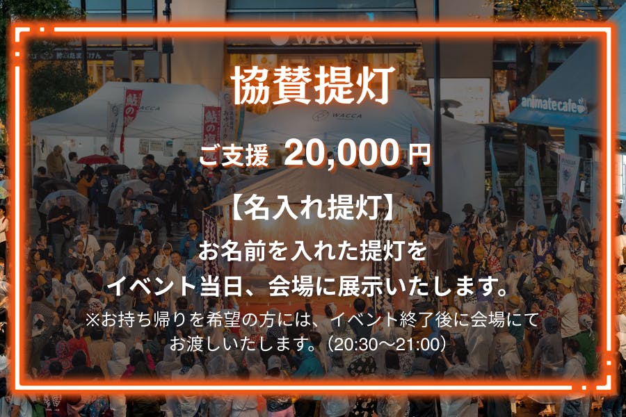 昨年から登場しました協賛提灯。お名前をいれた提灯をイベント当日に会場に展示いたします。