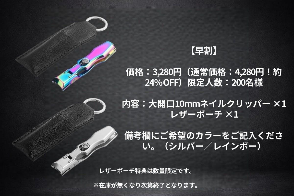 内容:大開口10mmネイルクリッパー ×1レザーポーチ ×1