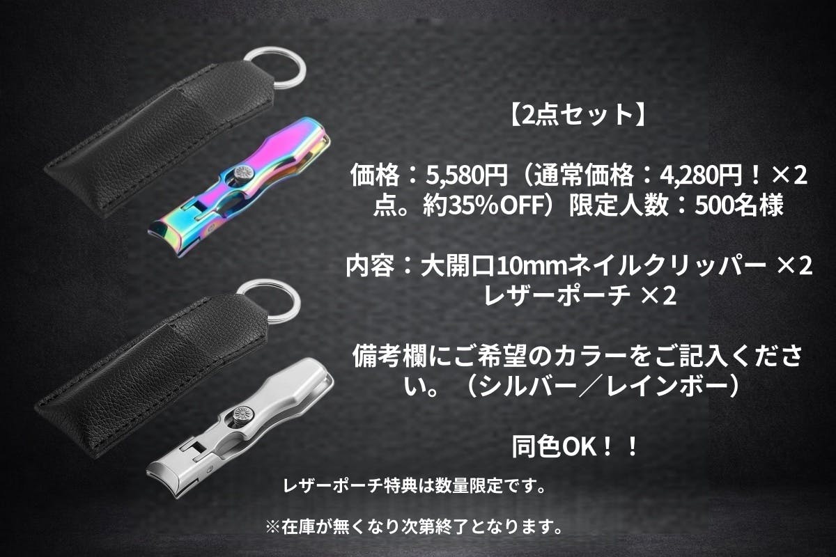 内容:大開口10mmネイルクリッパー ×2レザーポーチ ×2