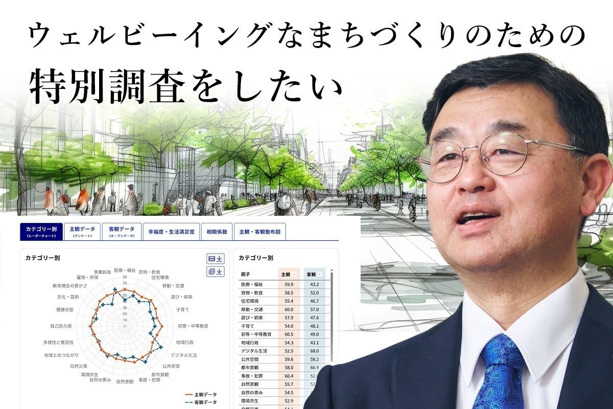 市民の暮らしやすさと幸福度を可視化する「地域幸福度(Well-Being)指標」の特別調査を実施し、一人ひとりが幸せを感じられるウェルビーイングなまちづくりに貢献したい