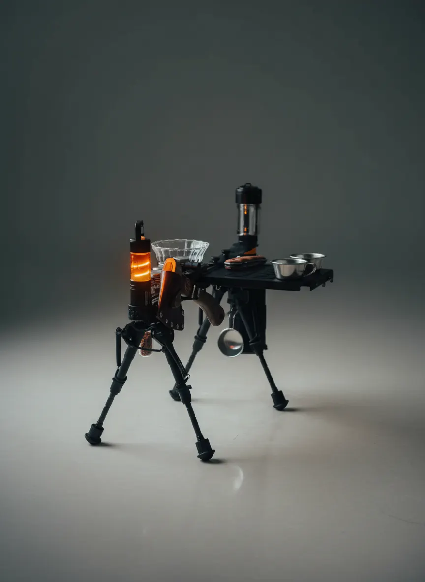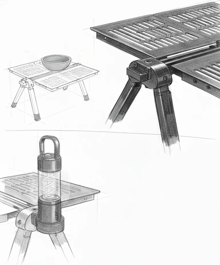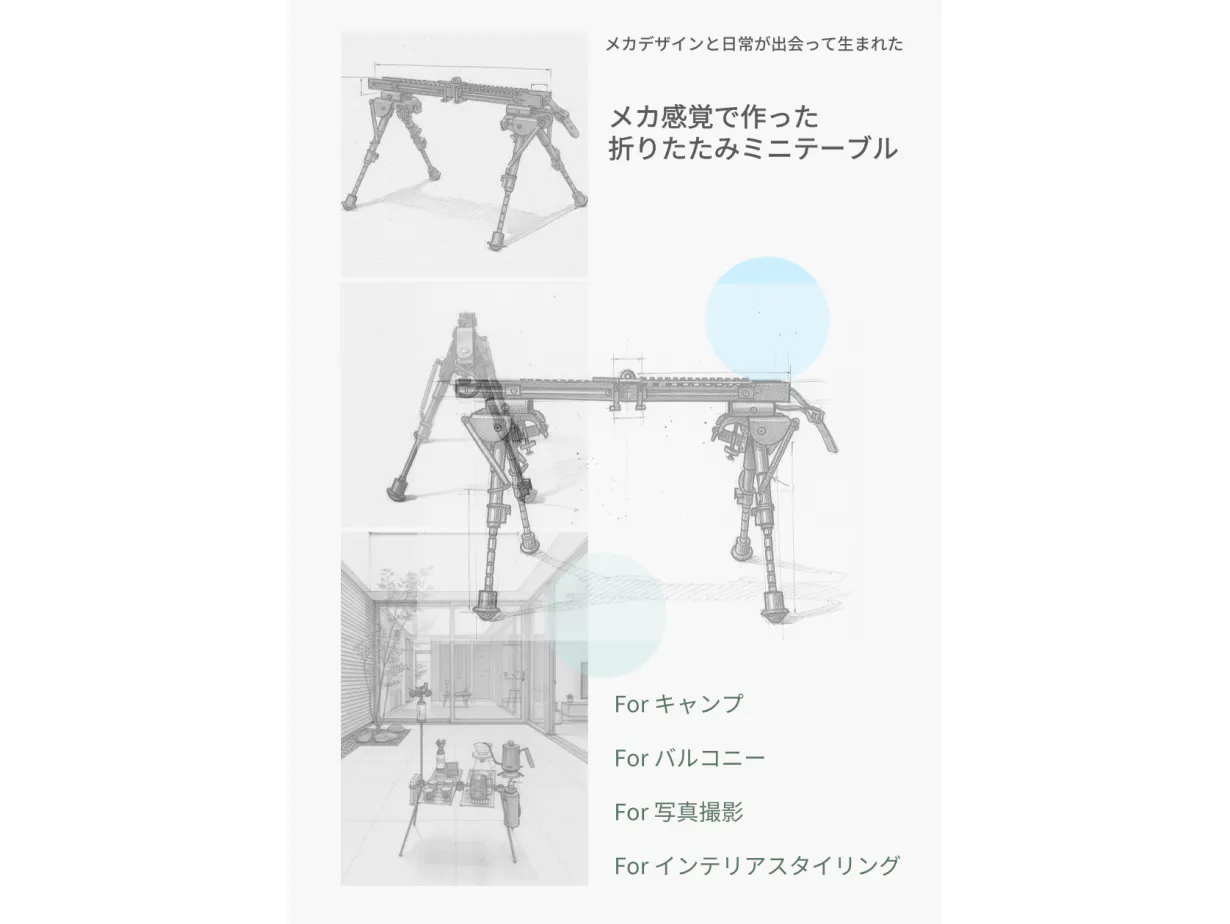 私たちがつくりたかったのは、単なる道具ではなく「機甲文化」と「日常の実用」を融合させたコンパクトテーブルです。