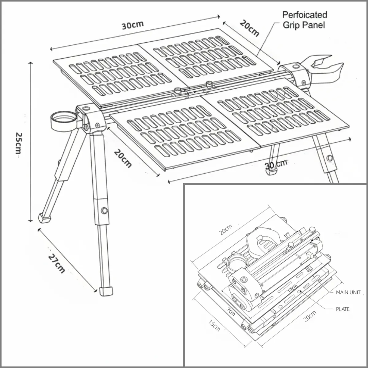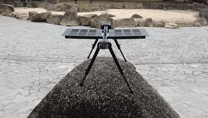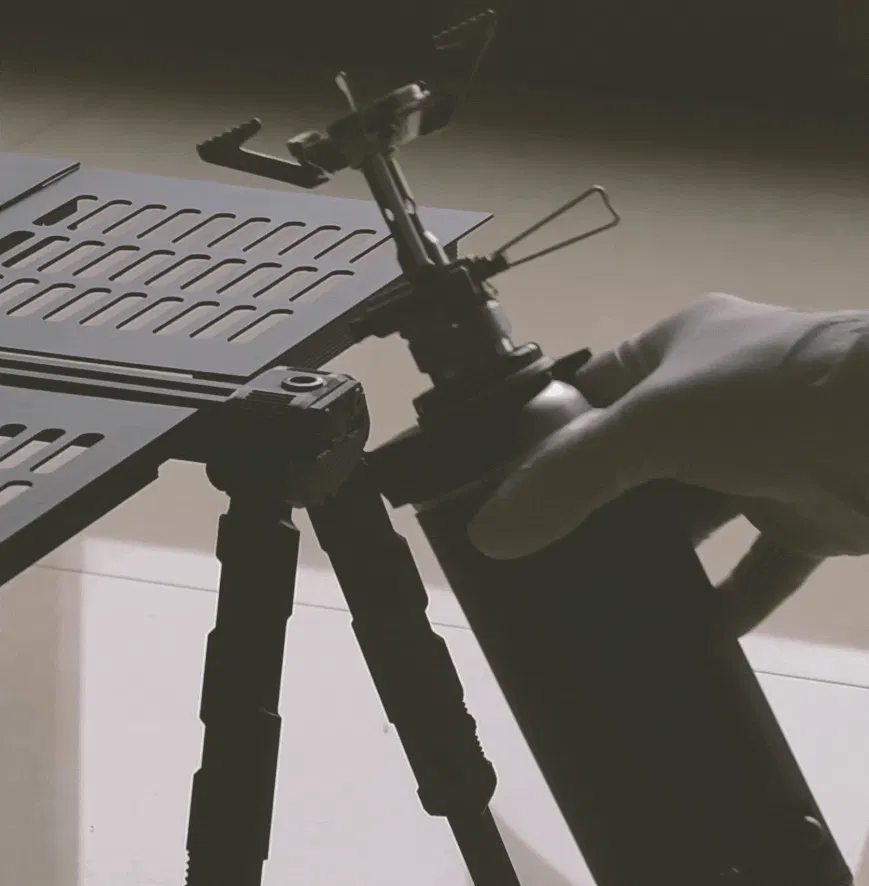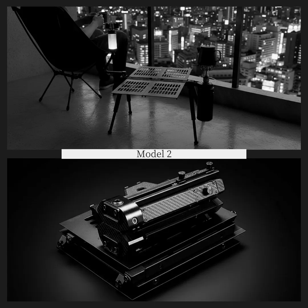 特徴:軽量化を考慮した3Dプリント脚部を採用。脚は(1cm刻み)高さ調節が可能で、より軽量・コンパクトに携行できます。軽量化と携帯性を重視する方に適した設計です。7段階調整脚により凸凹の石場や斜面でも天板を素早く水平に保て、不整地でも安定した作業が可能。