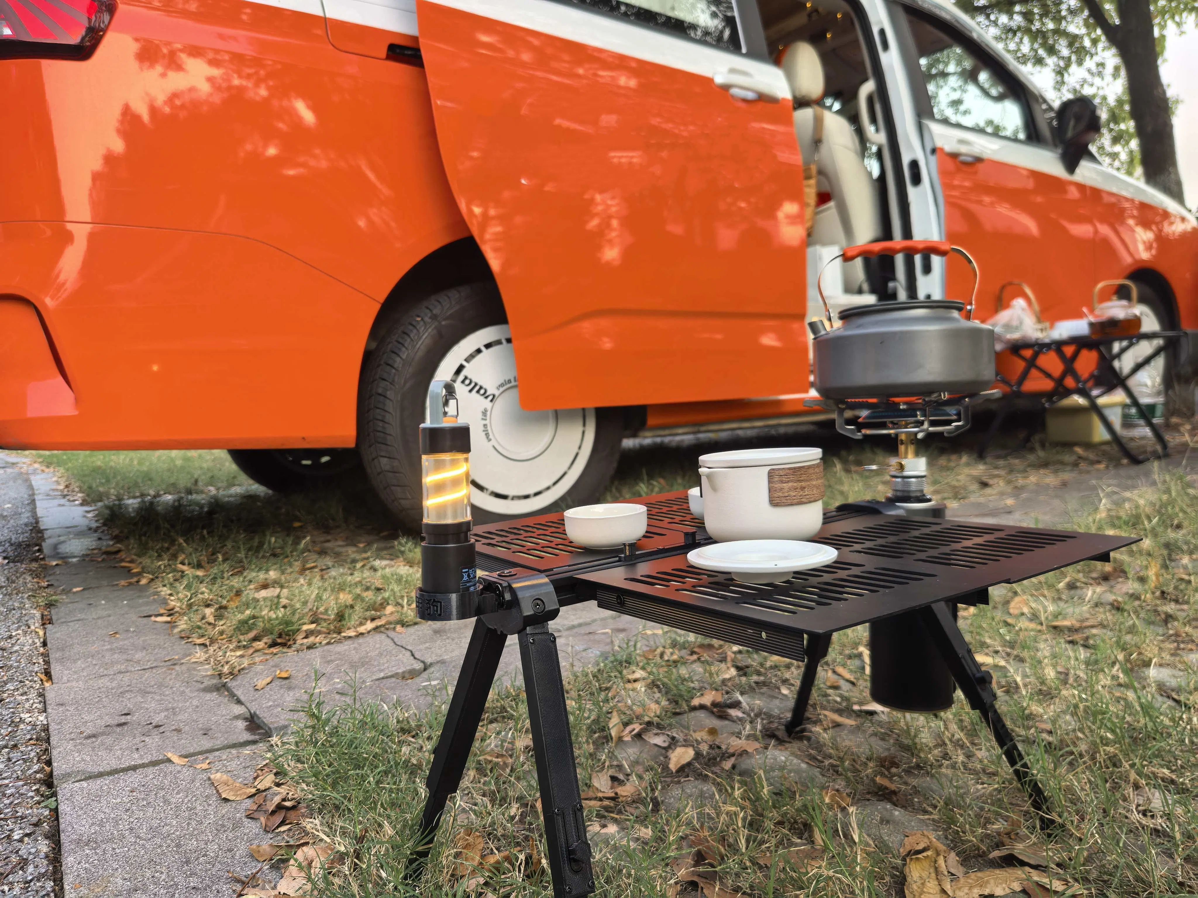 最大4枚のサイドテーブルを強固に連結し、安定感のあるワークスペースを構築できます。その日のアクティビティに合わせて必要なパネル数だけを持ち運ぶ、ミニマルかつ合理的なパッキングが可能。セッティングのバリエーションは、あなたの想像力次第で無限に広がります。