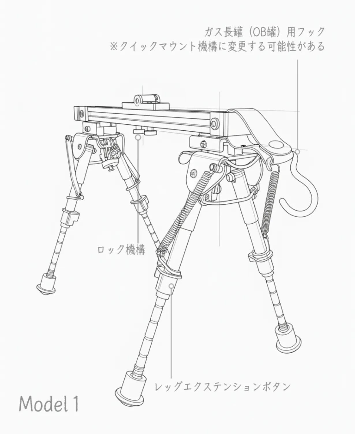 Model1の延長脚は角度等の影響によって出きらない場合は、優しく引き出してください。