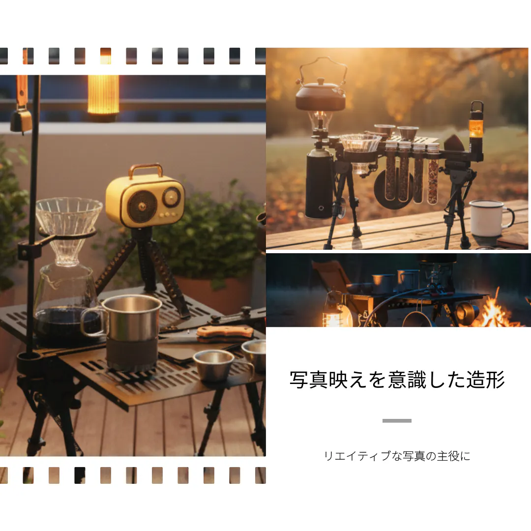 小さな相棒として、朝のコーヒーから夜の撮影まで、あなたの毎日に寄り添うことを願って設計しました。アウトドアでも室内でも、被写体にも道具にもなる―そんな多面性を宿しています。