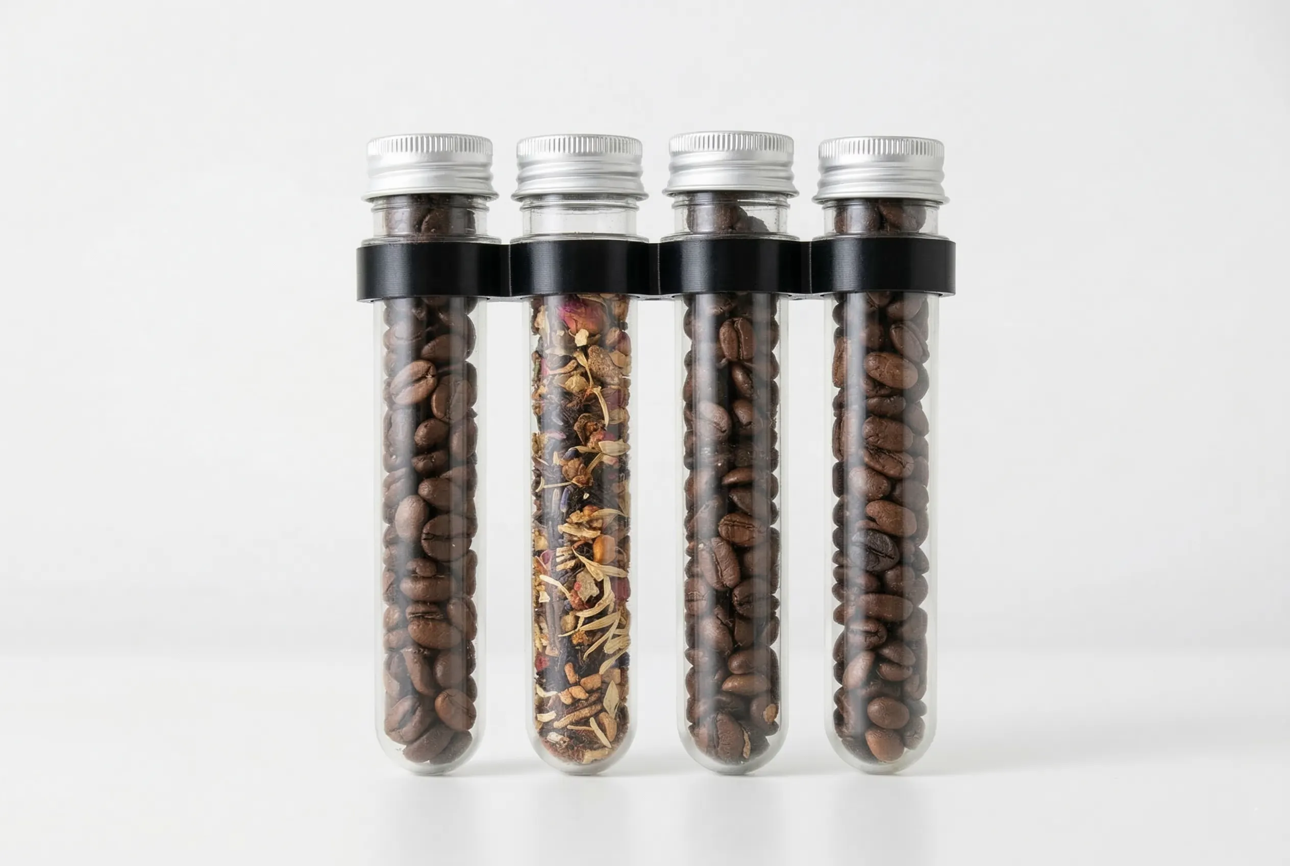 コーヒーやティータイムを、よりスタイリッシュに。「One Tube, One Brew」—試験管ひとつに、ちょうど1杯分の豆や茶葉を分けて保存できます。約20gのコーヒー豆を収納でき、アメリカーノ1杯分に最適な容量です。