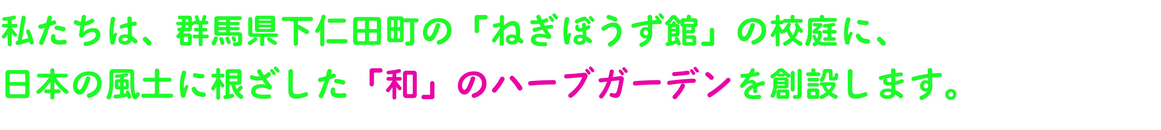 群馬県下仁田町の文化施設「ねぎぼうず館」。私たちはこの校庭に「和」のハーブ・ガーデンを創ります。ネット社会がはびこるなか、人びとの心や脳が疲れています。今こそ土に触れ、香りに包まれ、四季の移ろいを感じて、心と脳を浄化する場所が必要だと感じています。「和」のハーブ・ガーデンは小さな癒やしの空間です。