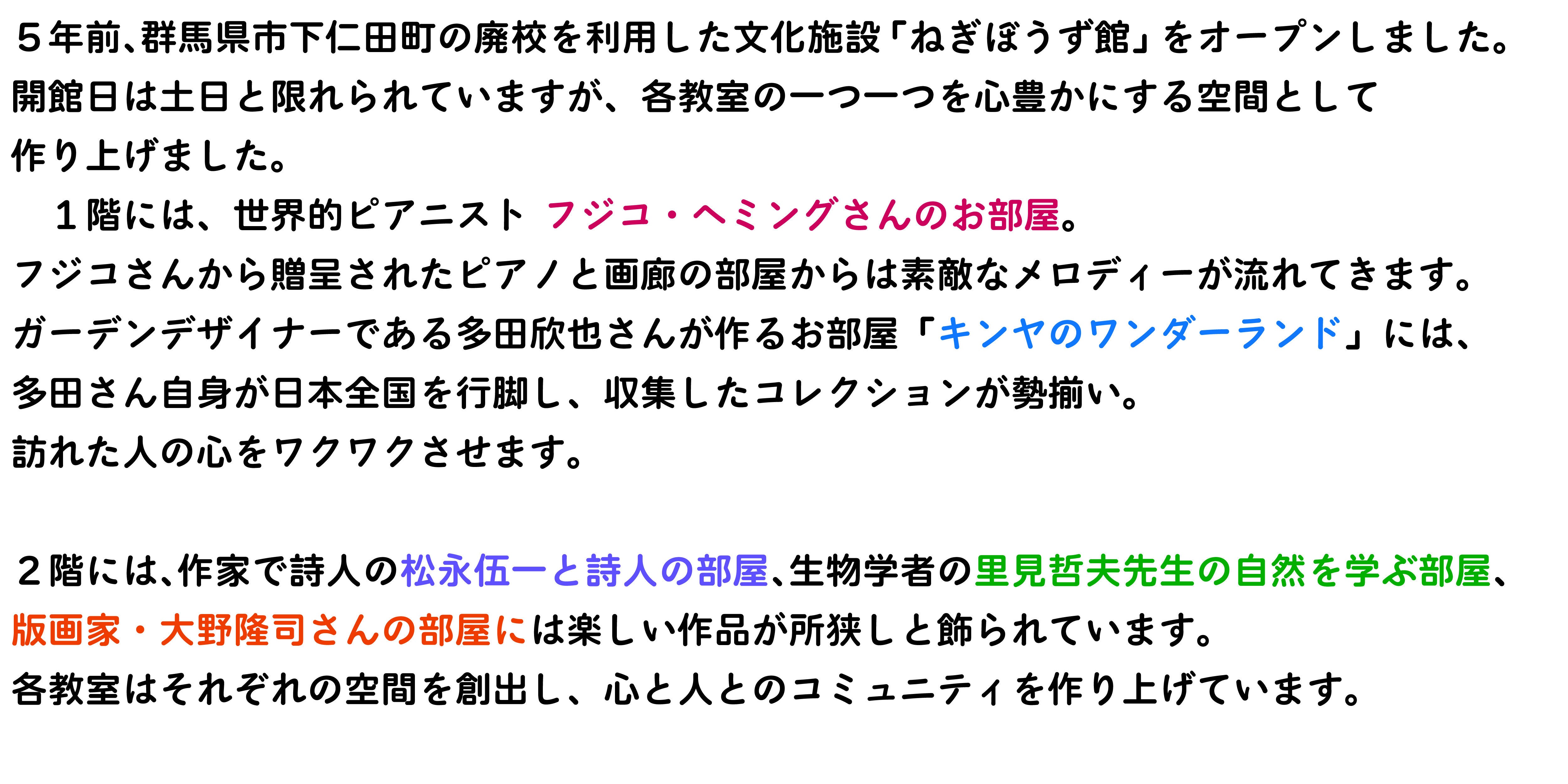 •  ※日程はねぎぼうず館が開館している土・日曜日限定とさせていただきます。メールにてご相談させていただきます。