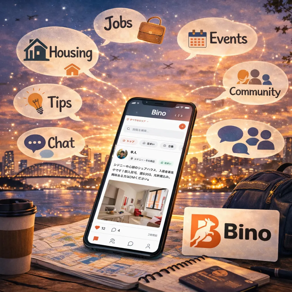 日本人向けの情報共有アプリ「Bino」の開発を進めています。