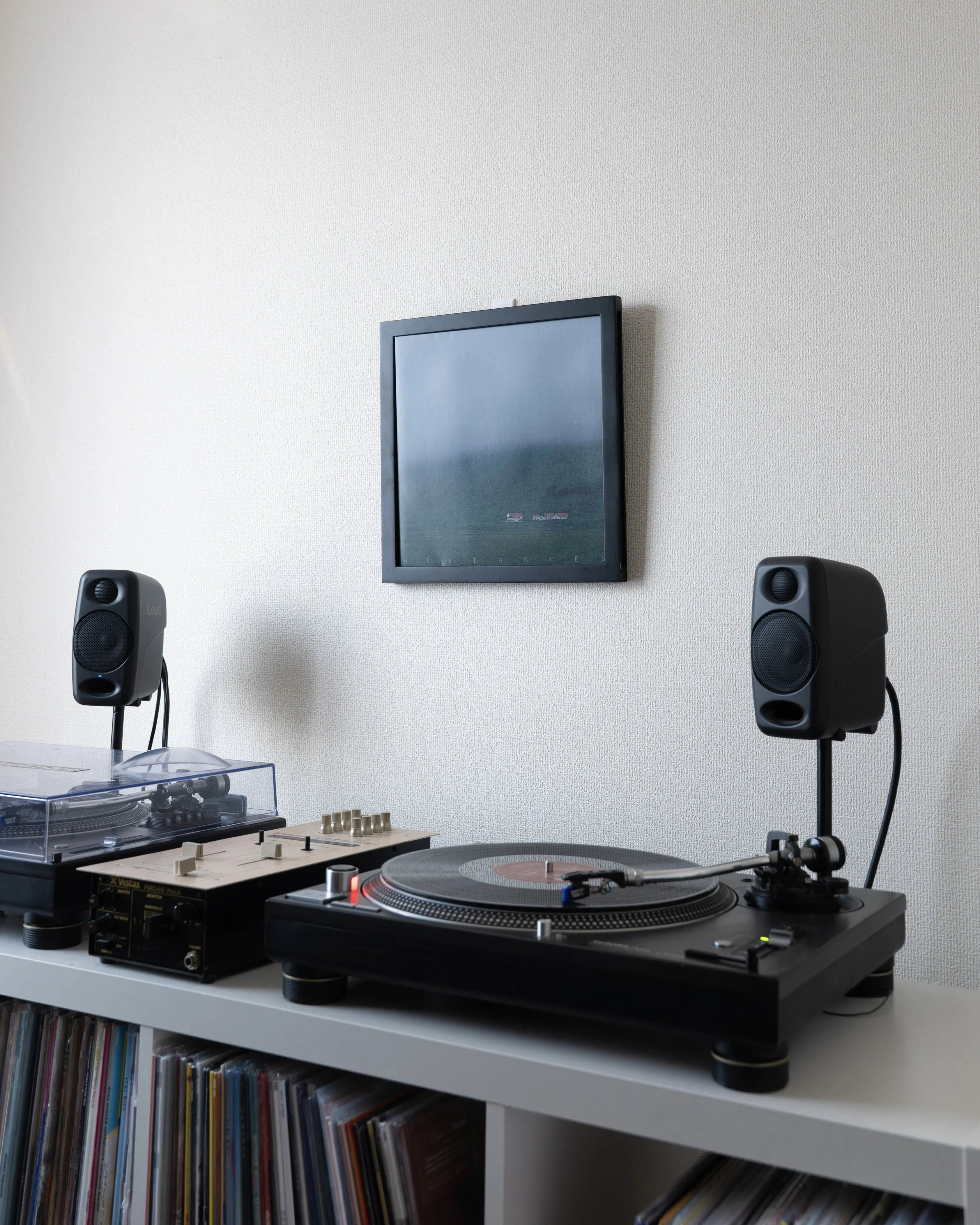 実家暮らしの頃、音楽はイヤホンで聴くものでした。しかし一人暮らしを始めてからは、ジャケットを飾り、レコードに針を落とし、スピーカーから部屋中に音楽が響く生活へと変わりました。それは単なる音源の再生ではなく、音楽のある空間や時間そのものをつくる体験でした。