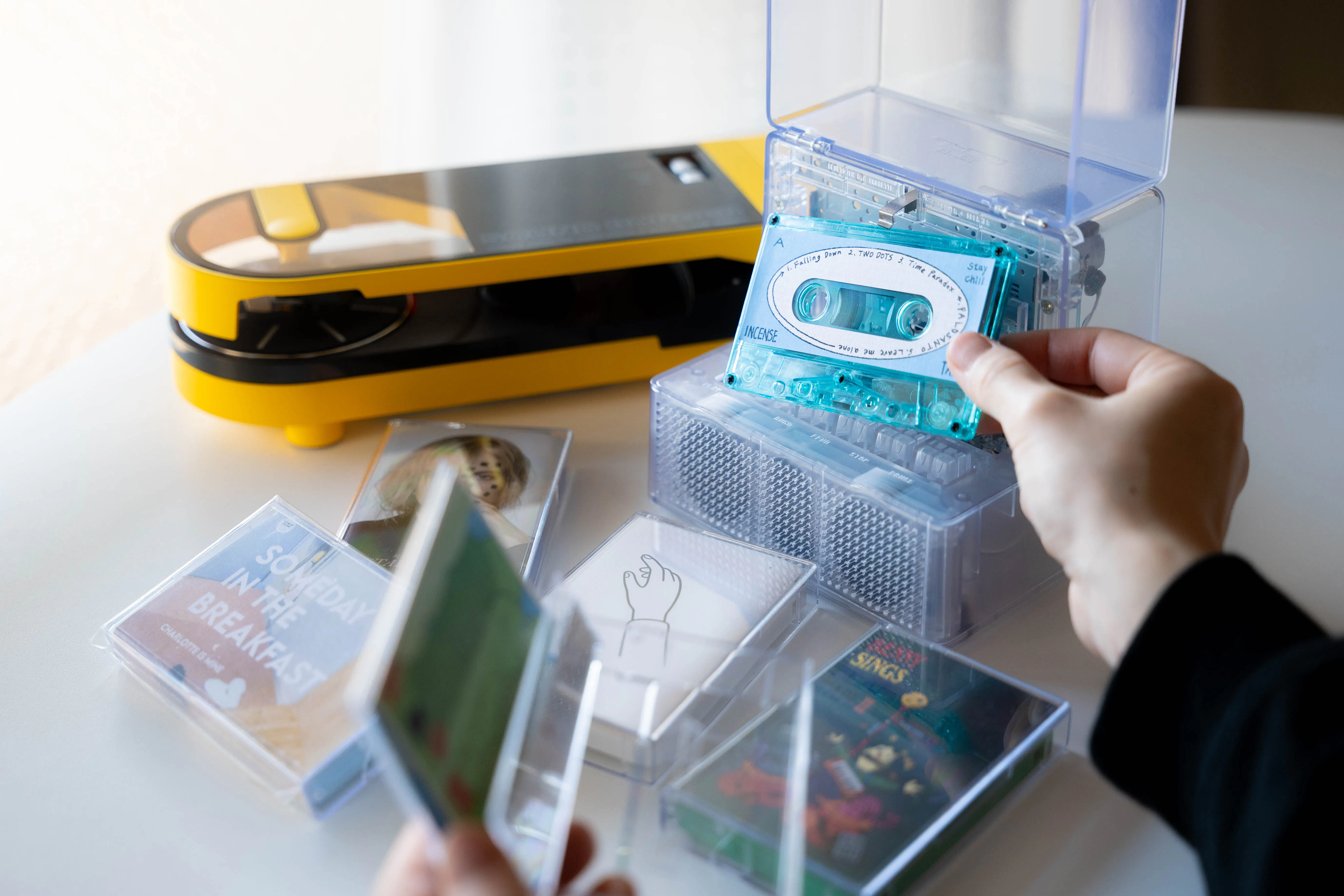 Bringing analog media such as cassette tapes, records, and books back into everyday life is both romantic and meaningful, especially in today’s world.