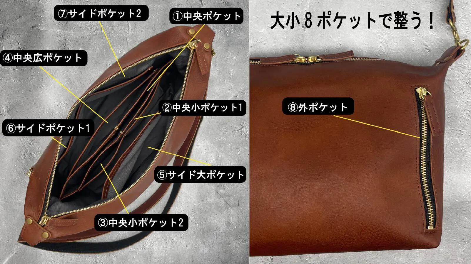 1. 豊富な大小8ポケット!