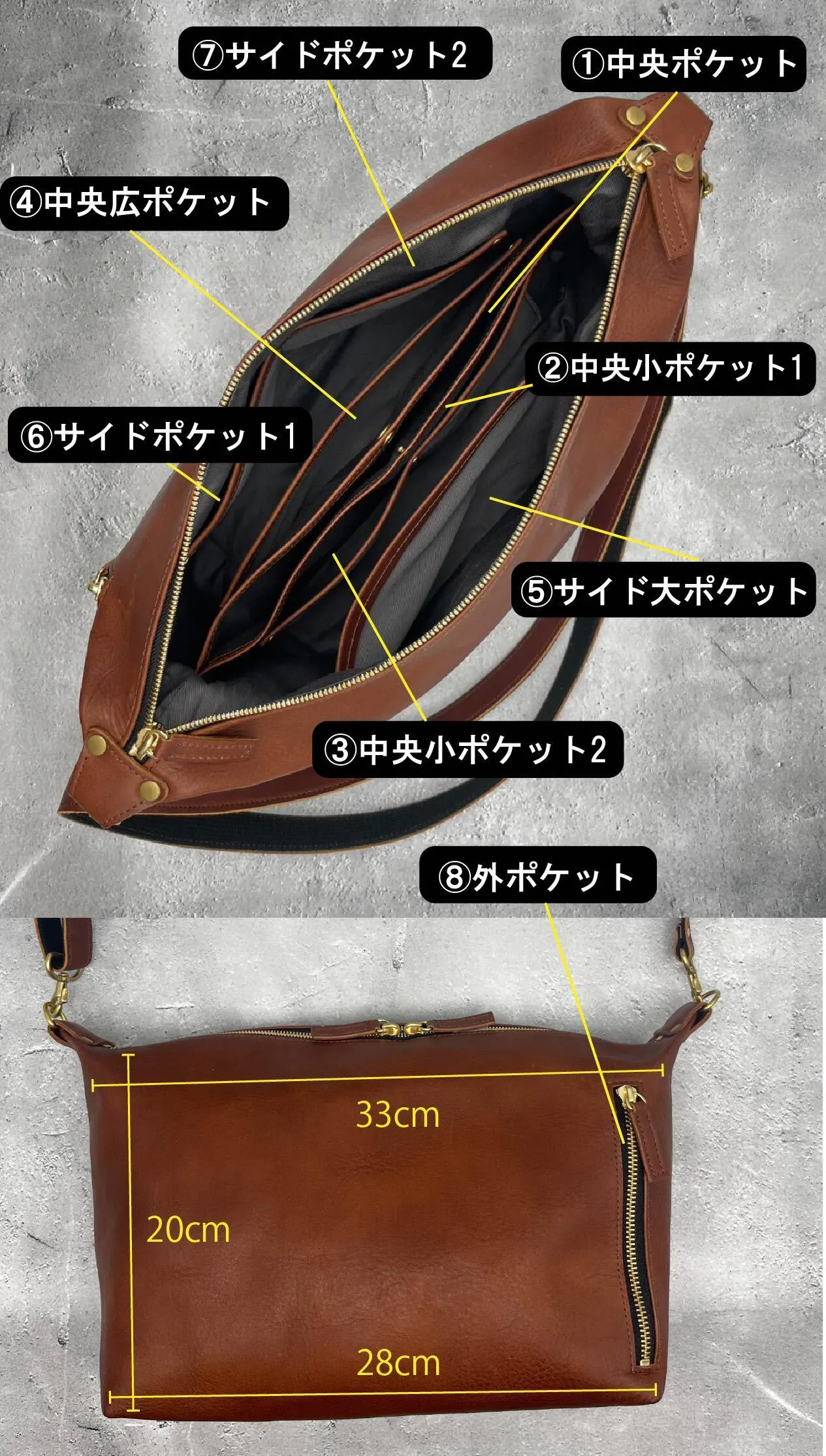 大小8ポケット完備!(外に1つと中には大小7個のポケット)