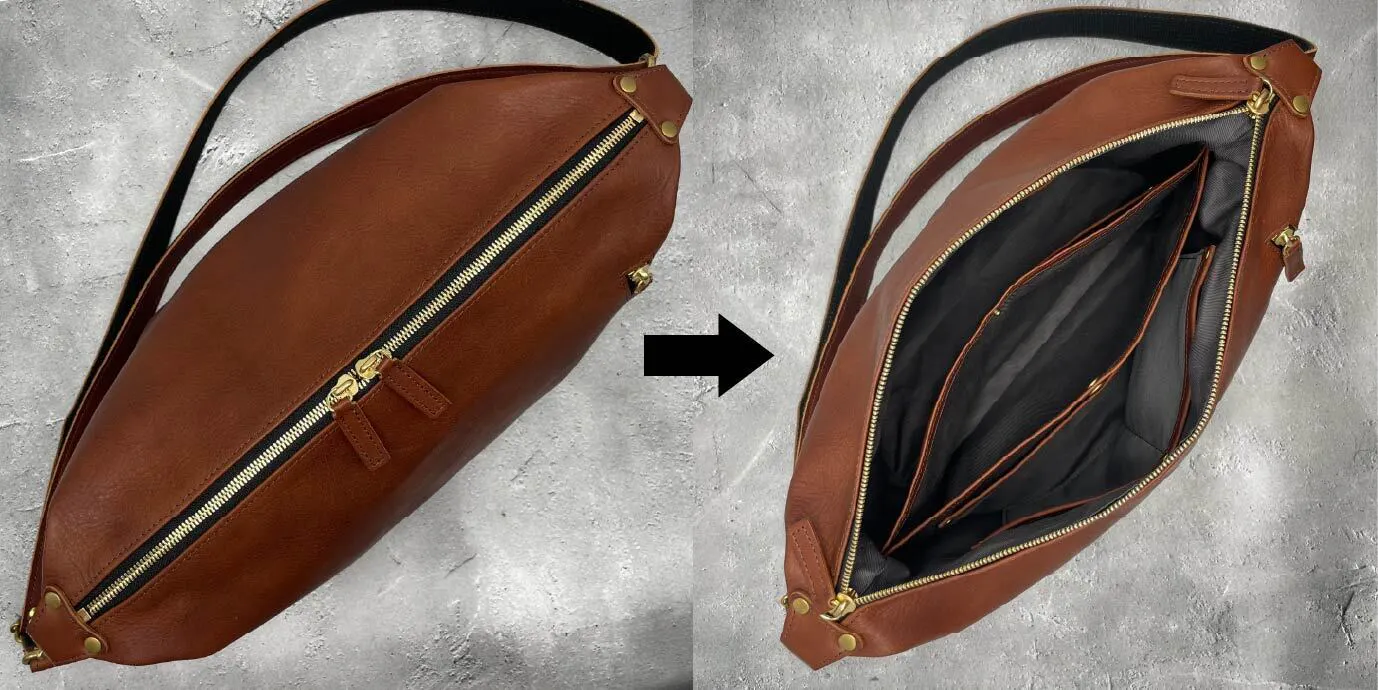 美しく整う秘密は、中央ポケットが仕切りのようになっていて自然と整理整頓!荷物の素早い出し入れは、スマートな大人の証です。