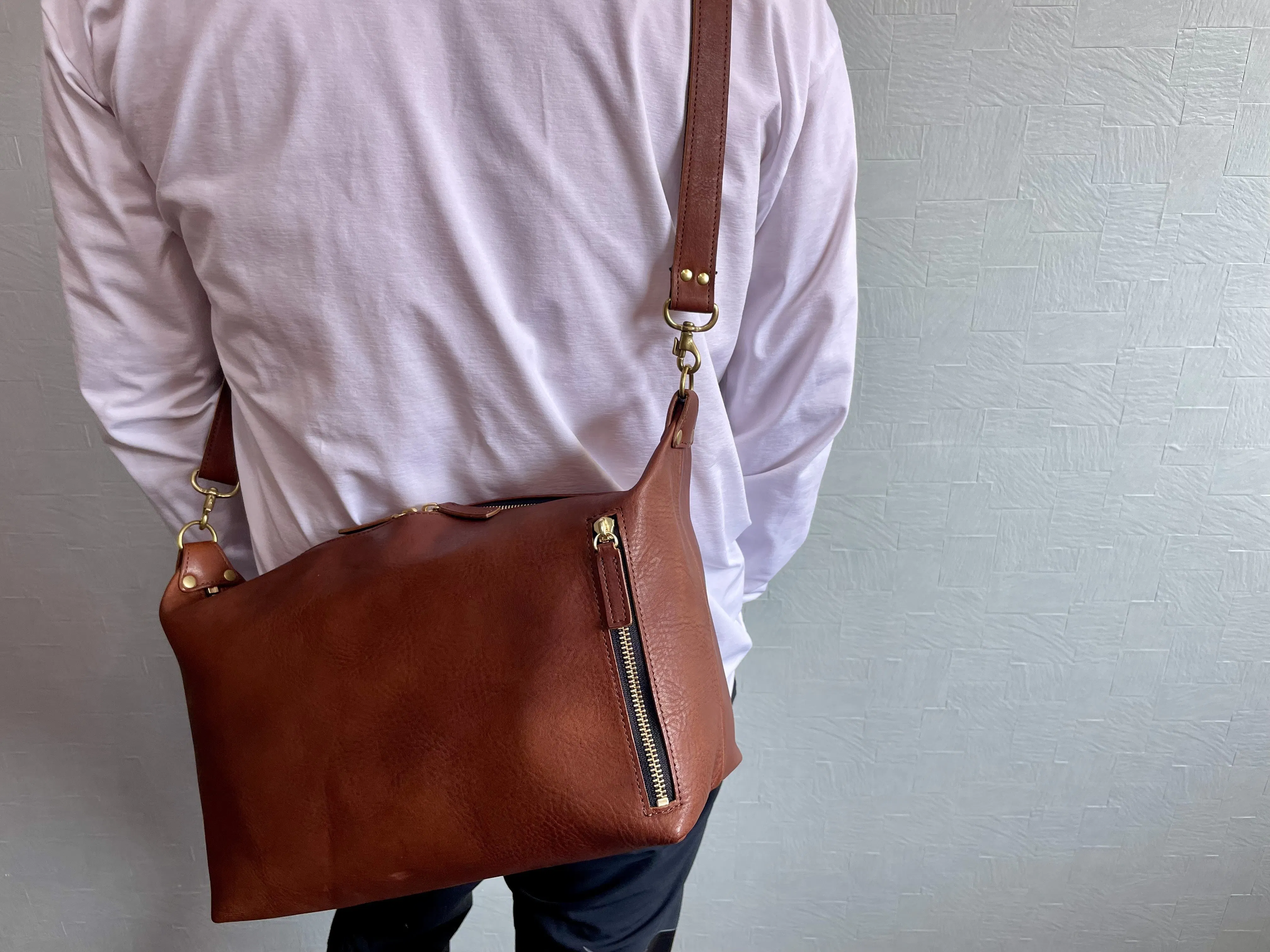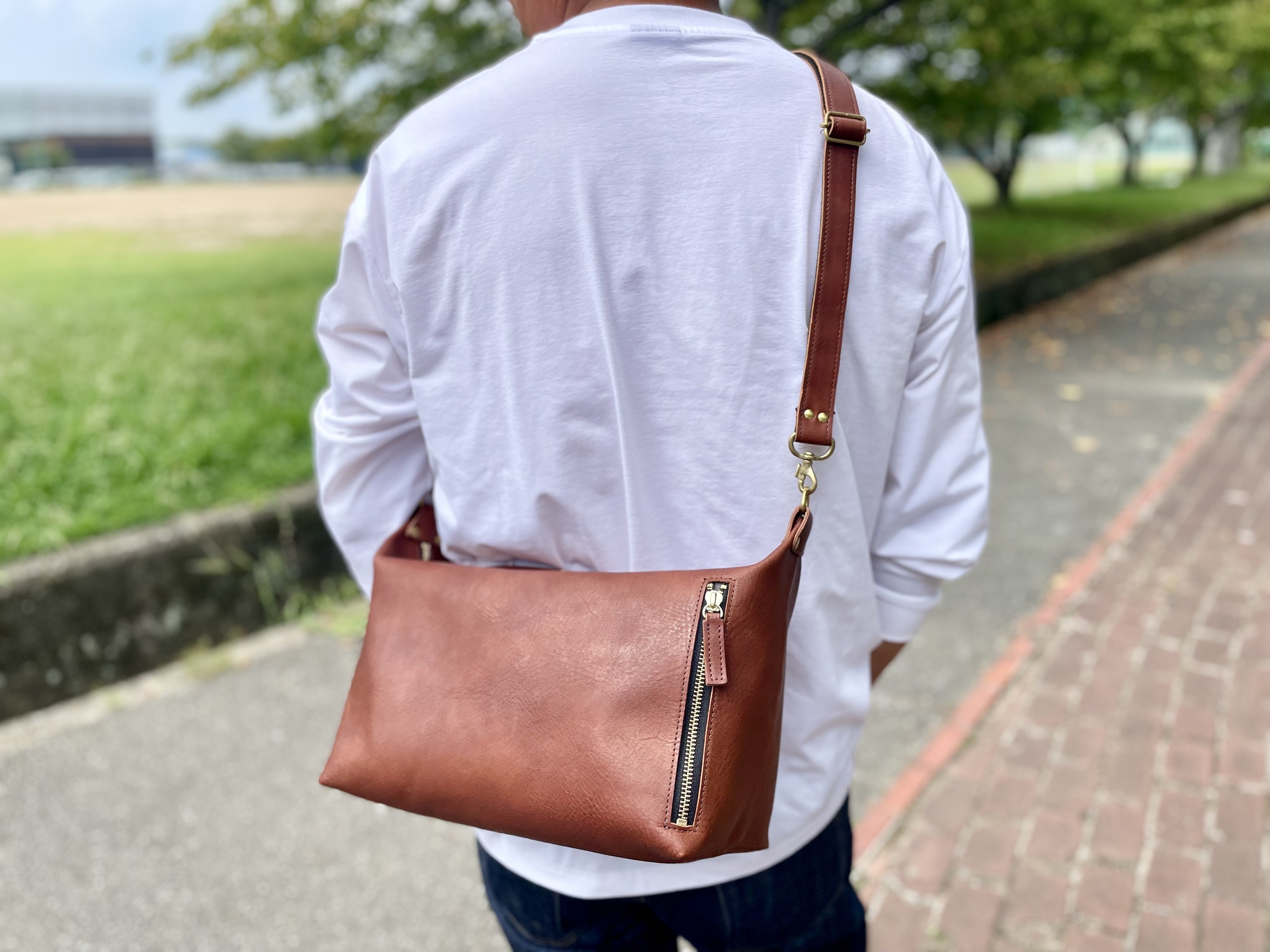 大きすぎず、小さすぎずの使いやすさを重視したショルダーバッグが出来上がりました。ワイルドにガシガシ使い込み、味を深めて相棒として長く使ってほしい。そんな思いを込めました。