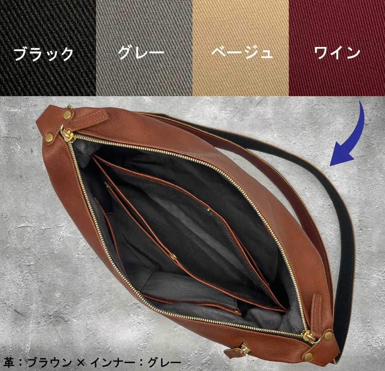 インナーカラーのチョイスが可能です!通常インナーカラーは、どなたでも使いやすい1色を決めてすべて同じものを生産しますが、ファクトリーブランドだからこそ可能な強みを活かしました。楽しみと個性を感じていただけるよう、インナーカラーを4色から選べます!