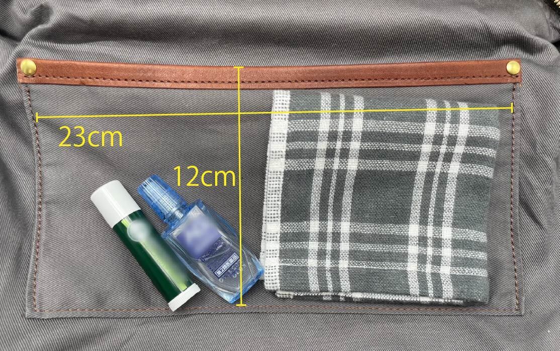 外のポケットにはすぐに取り出したいものを収納!(奥行は約20cm)