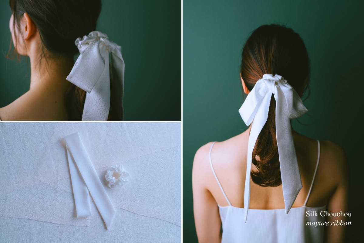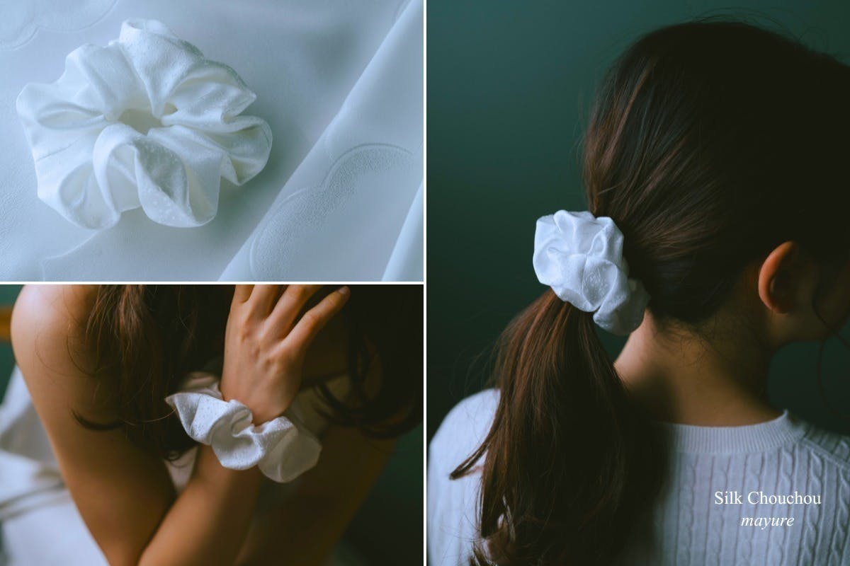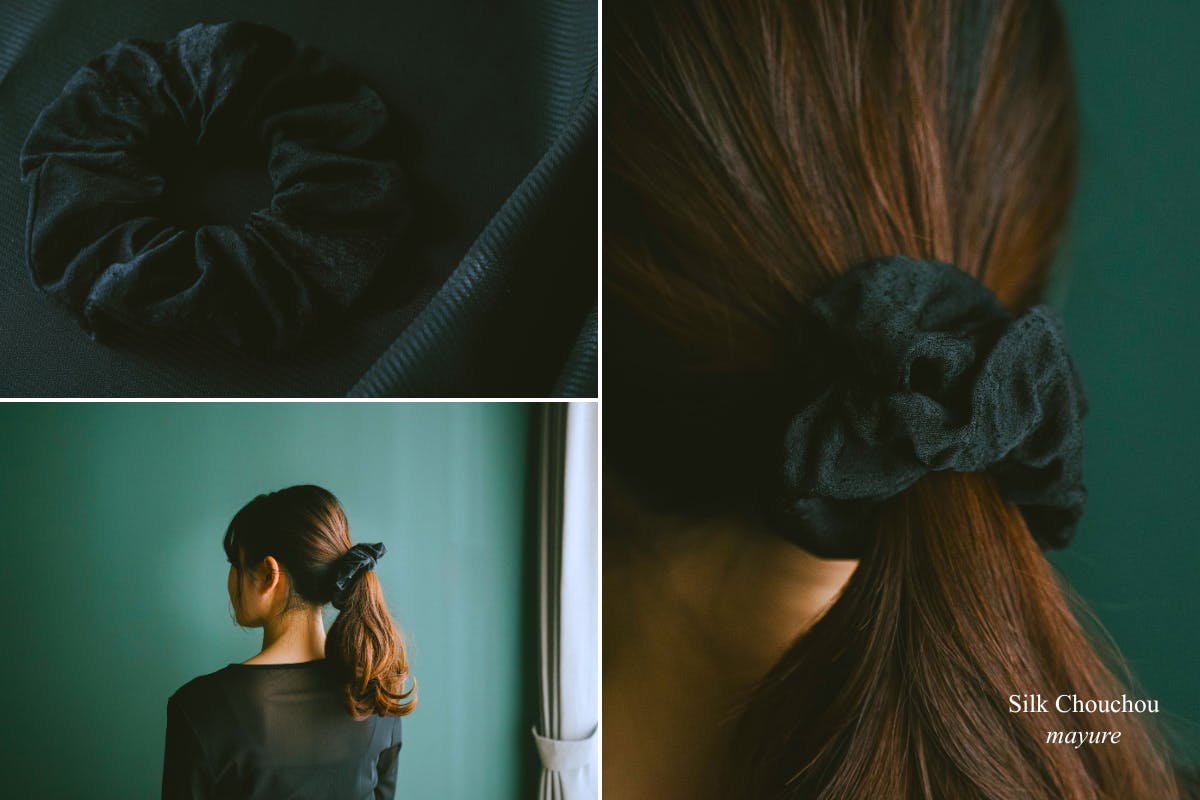 丹後ちりめんから生まれた、絹100%のシルクシュシュ ”mayure”