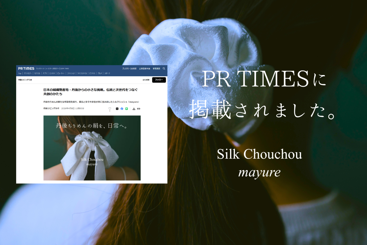 丹後ちりめんの新たな可能性と、織元と女子大学生がともに生み出したシルクシュシュ「mayure」の背景について、丁寧にまとめていただいています。