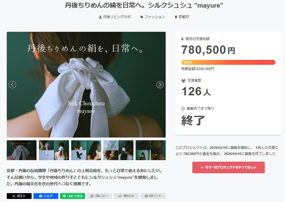 昨夜をもちまして、シルクシュシュ「mayure」のクラウドファンディングは無事終了いたしました。