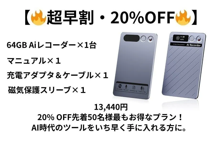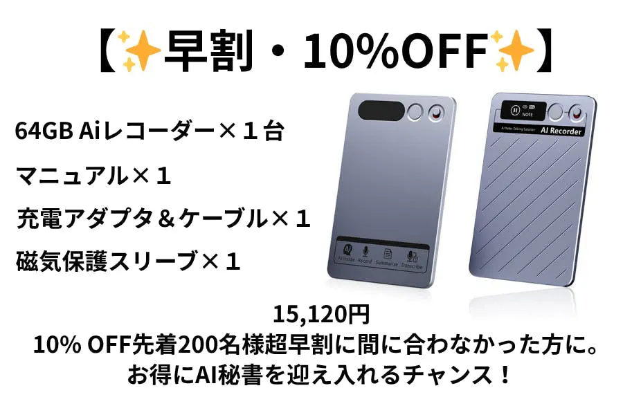 議事録に追われる日々を終わりにしませんか?このAIガジェットは、あなたのポケットの中の最強のビジネスパートナーとなることをお約束します。