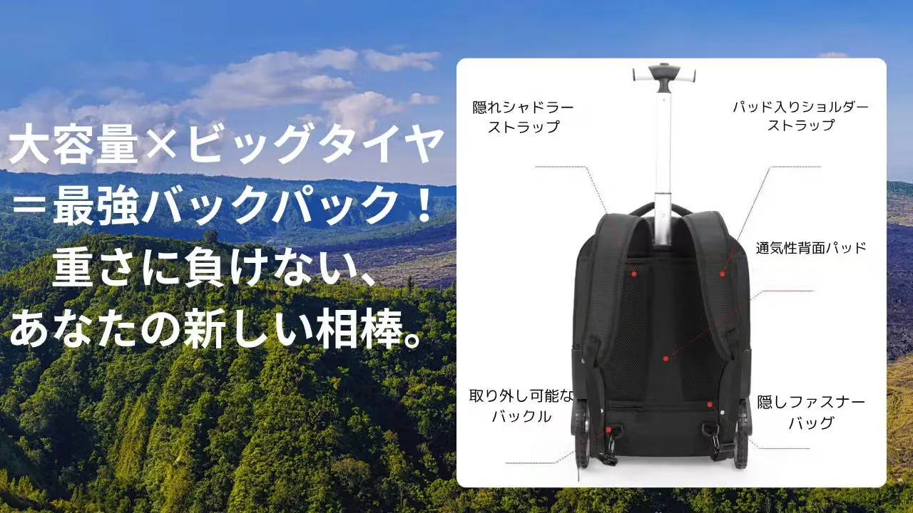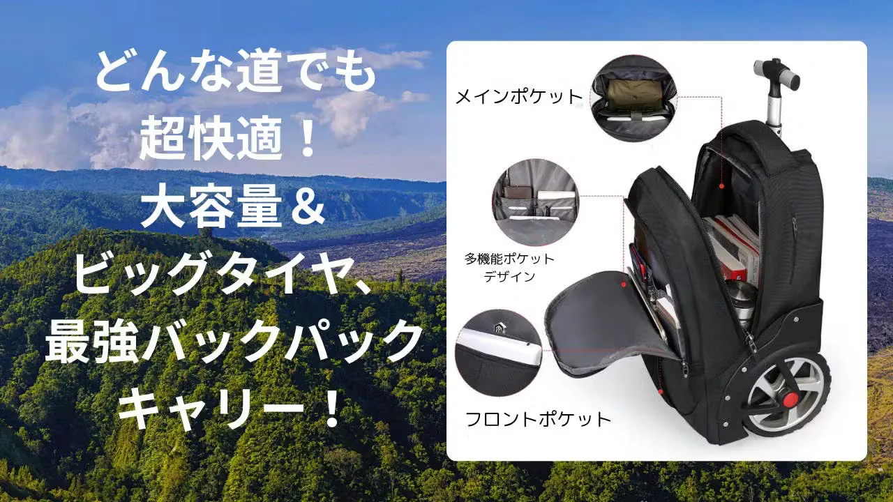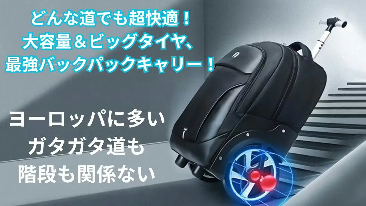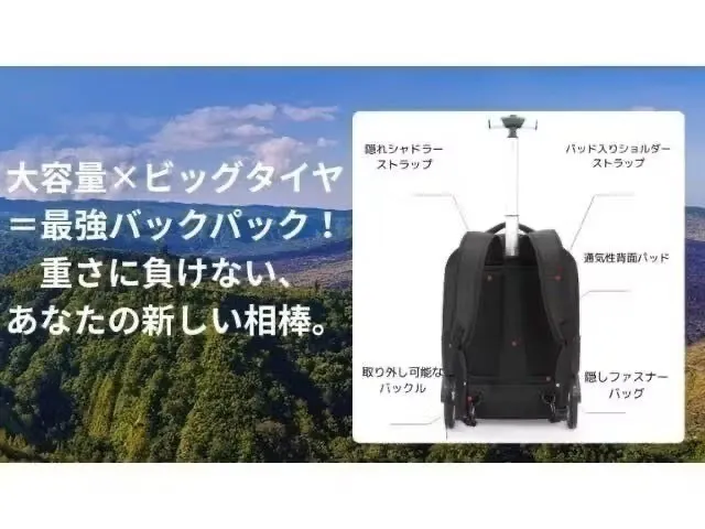 「大きなタイヤでスムーズに進む、旅行の頼れる相棒!」