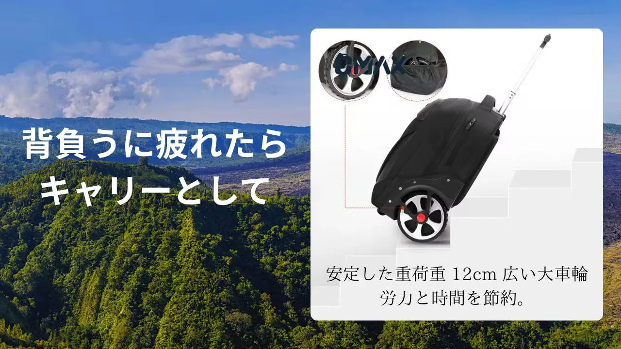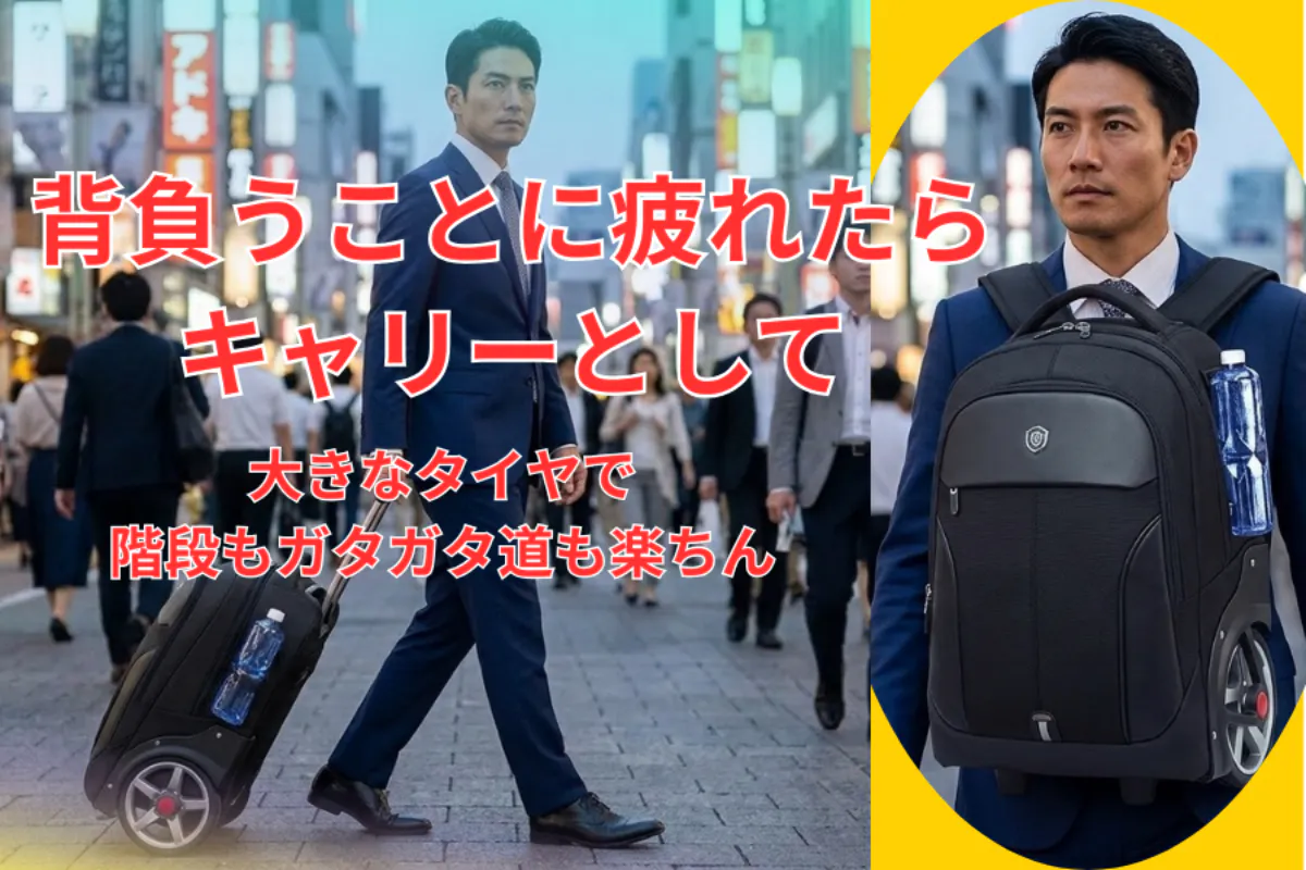 バックパックとして、背負うのに疲れたらキャリーとして使えるを物を見つけましたのこれは勧めなきゃと思い立ち上げました。