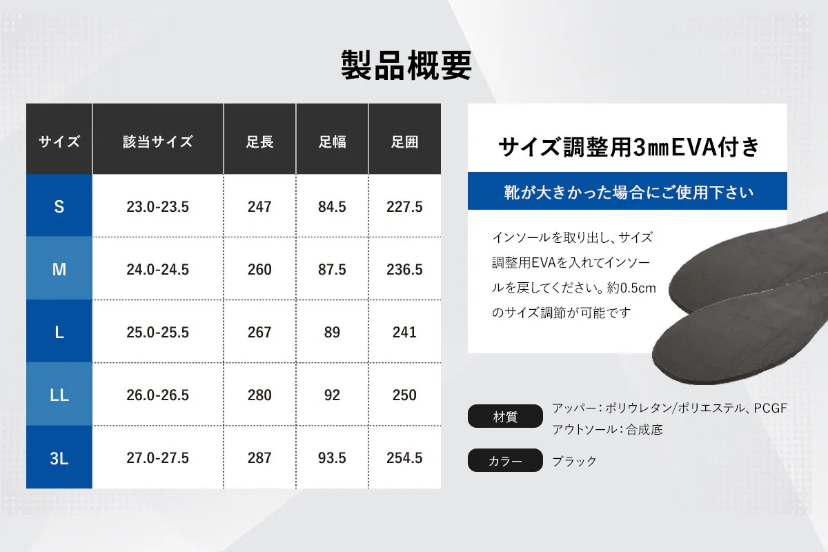 大きすぎる場合は、同封の「サイズ調整用インソール」もおすすめです。