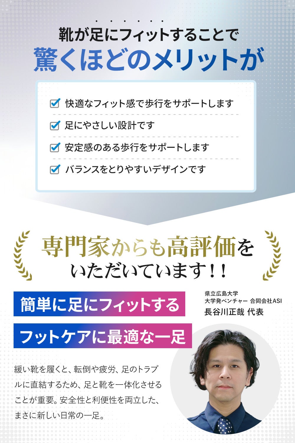 このシューズが、皆さまの毎日の一歩を少しでも快適に、そして少し楽しくする存在になればと思っています。