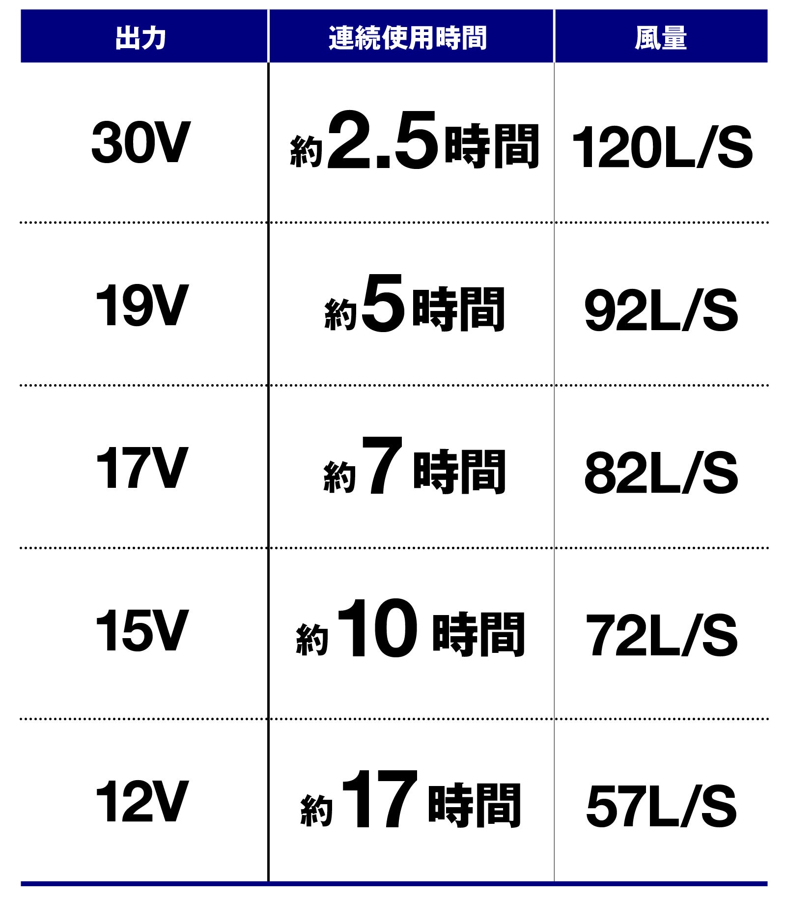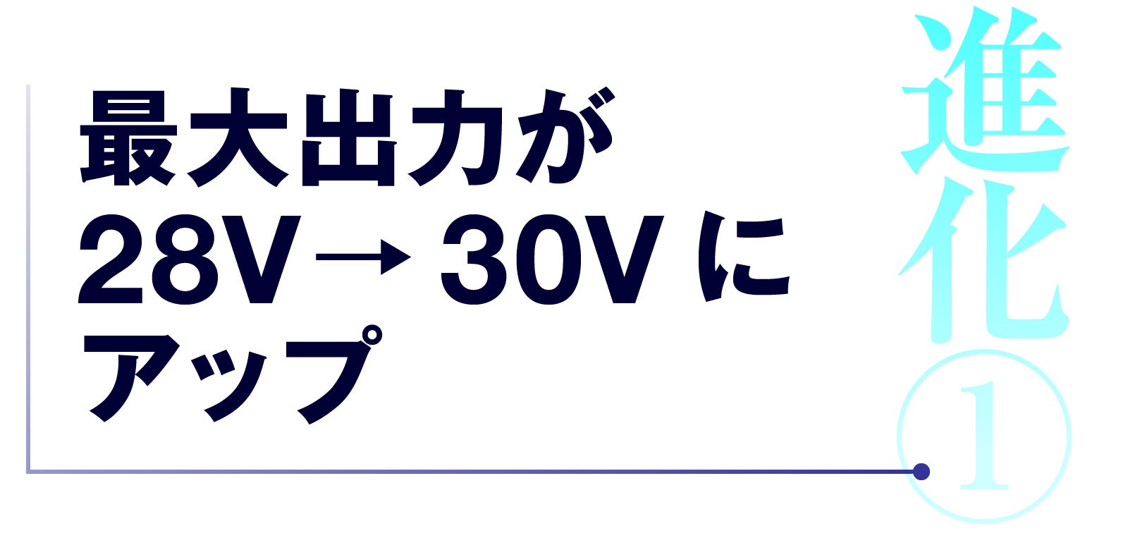今回のモデルでは、ファンを駆動するバッテリーの最大出力を30Vに強化。